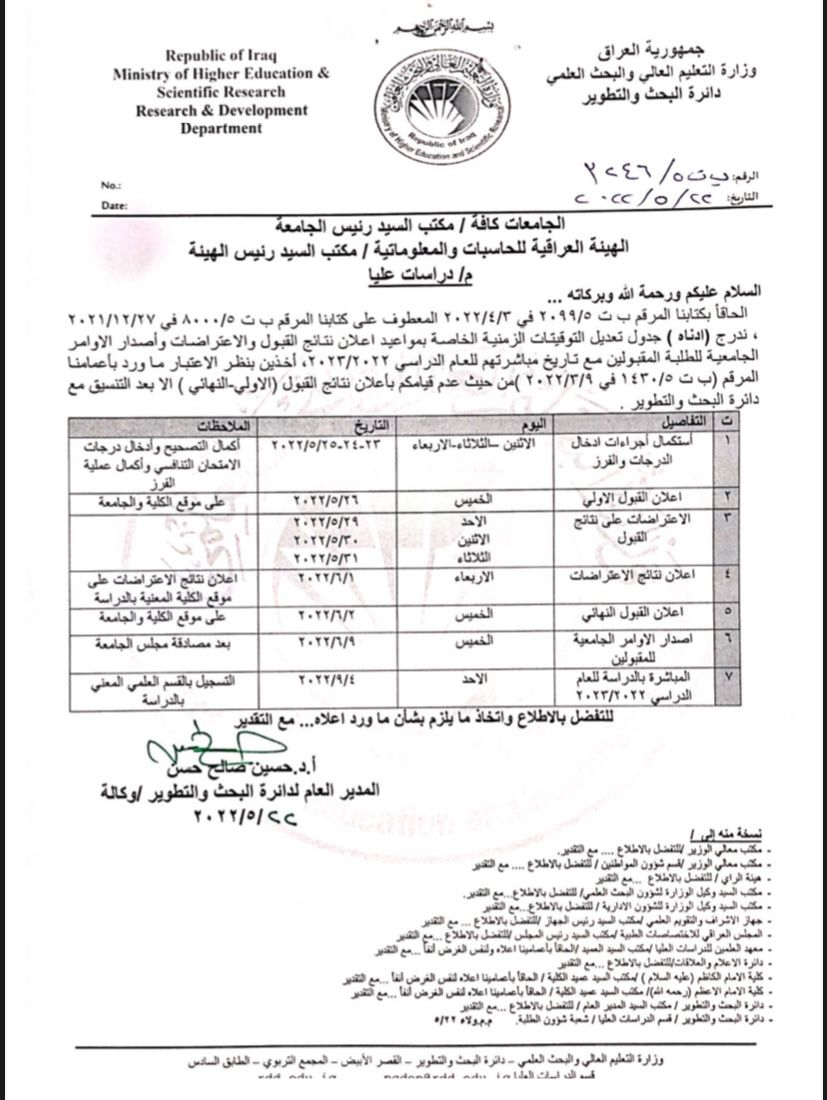 أعلان نتائج الامتحان التنافسي للدراسات العليا للعام الدراسي 2022-2023