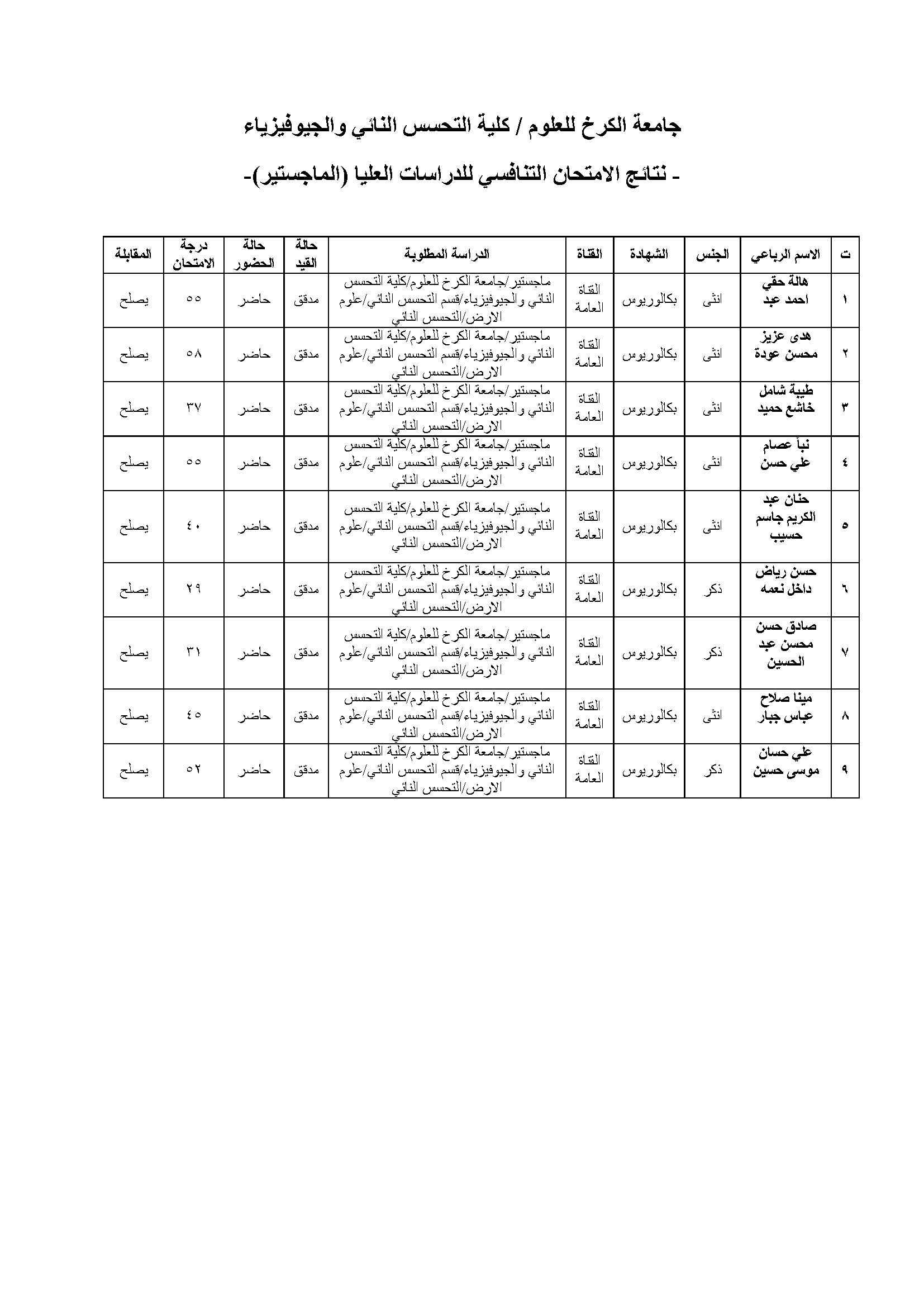 ملاحظة ان النتائج اعلاه تمثل نتائج الامتحان التنافسي وليس نتائج القبول