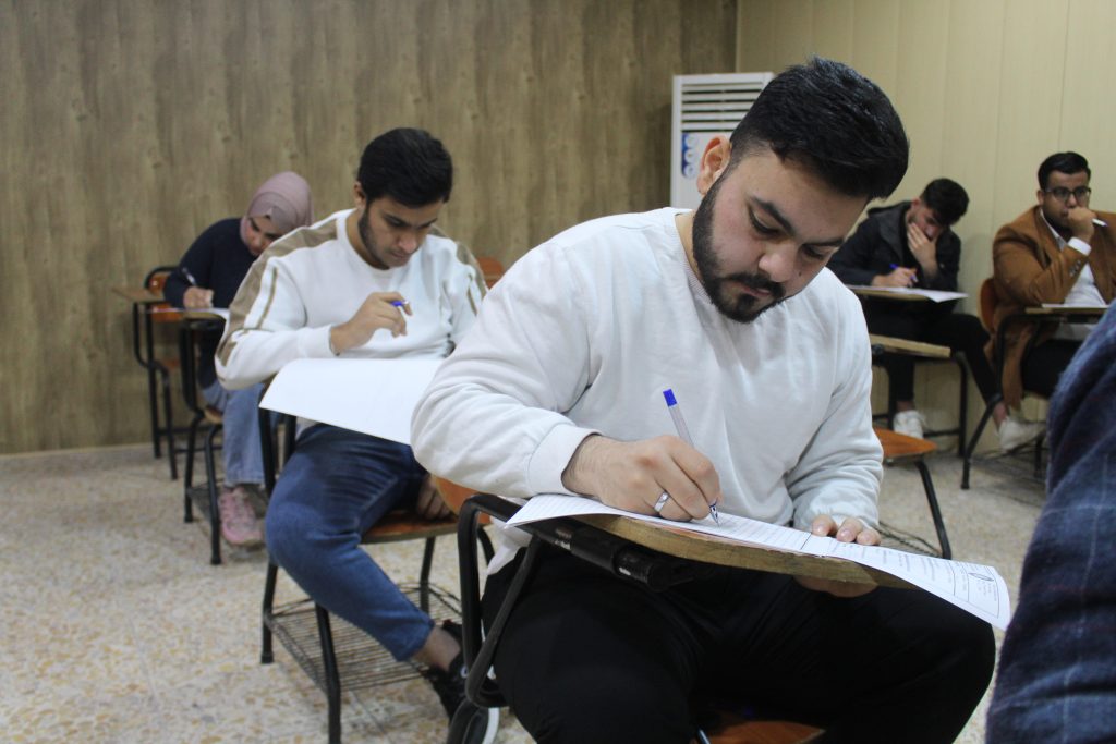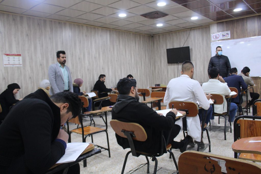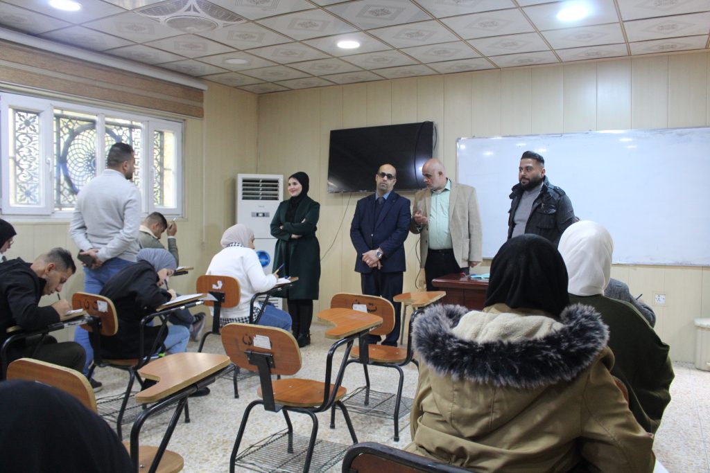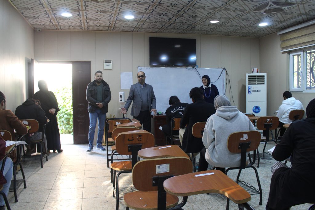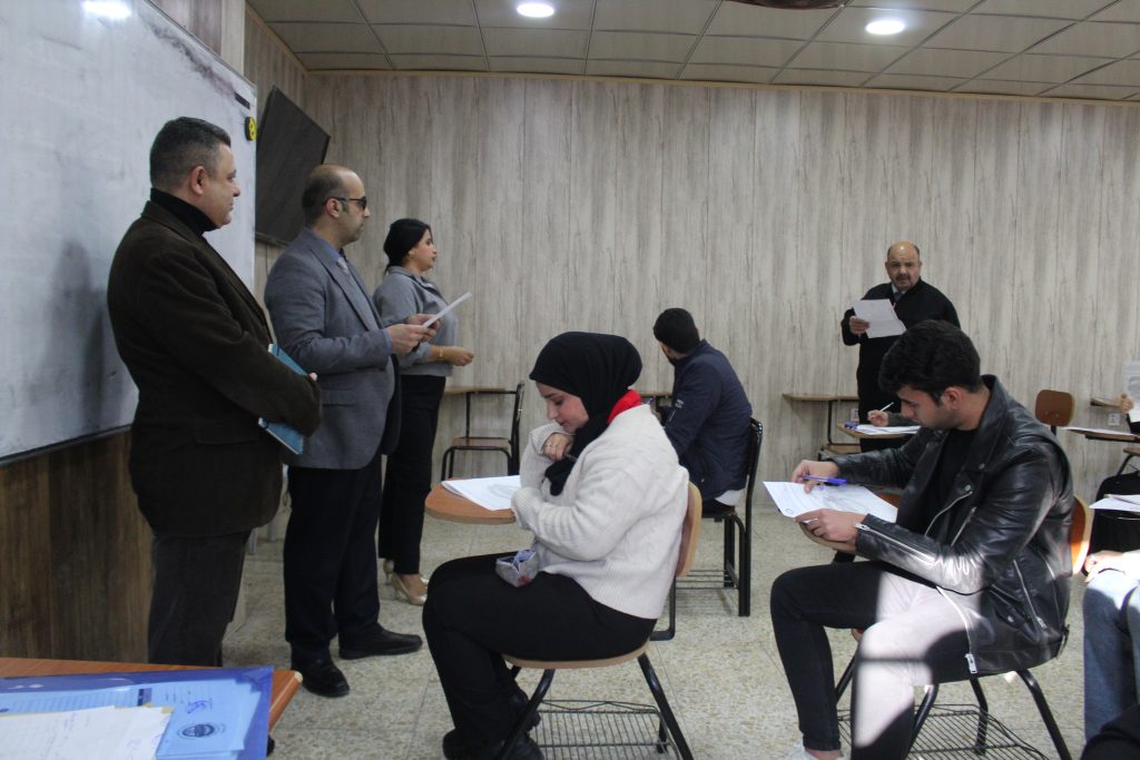 بأشرف السيد عميد الكلية والسادة المعاونون واعضاء اللجان الامتحانية في الاقسام العلمية على سير الامتحانات وإجراءات المتبعة في القاعات الامتحانية ، كما وجه السيد العميد المحترم الاقسام العملية وحسب توجيهات الوزارة والسيد رئيس الجامعة المحترم بمعالجة الحالات الطارئة التي تواجه الامتحانات بشكل موضوعي وقانوني وحسب الصلاحيات المخولة للجامعات.