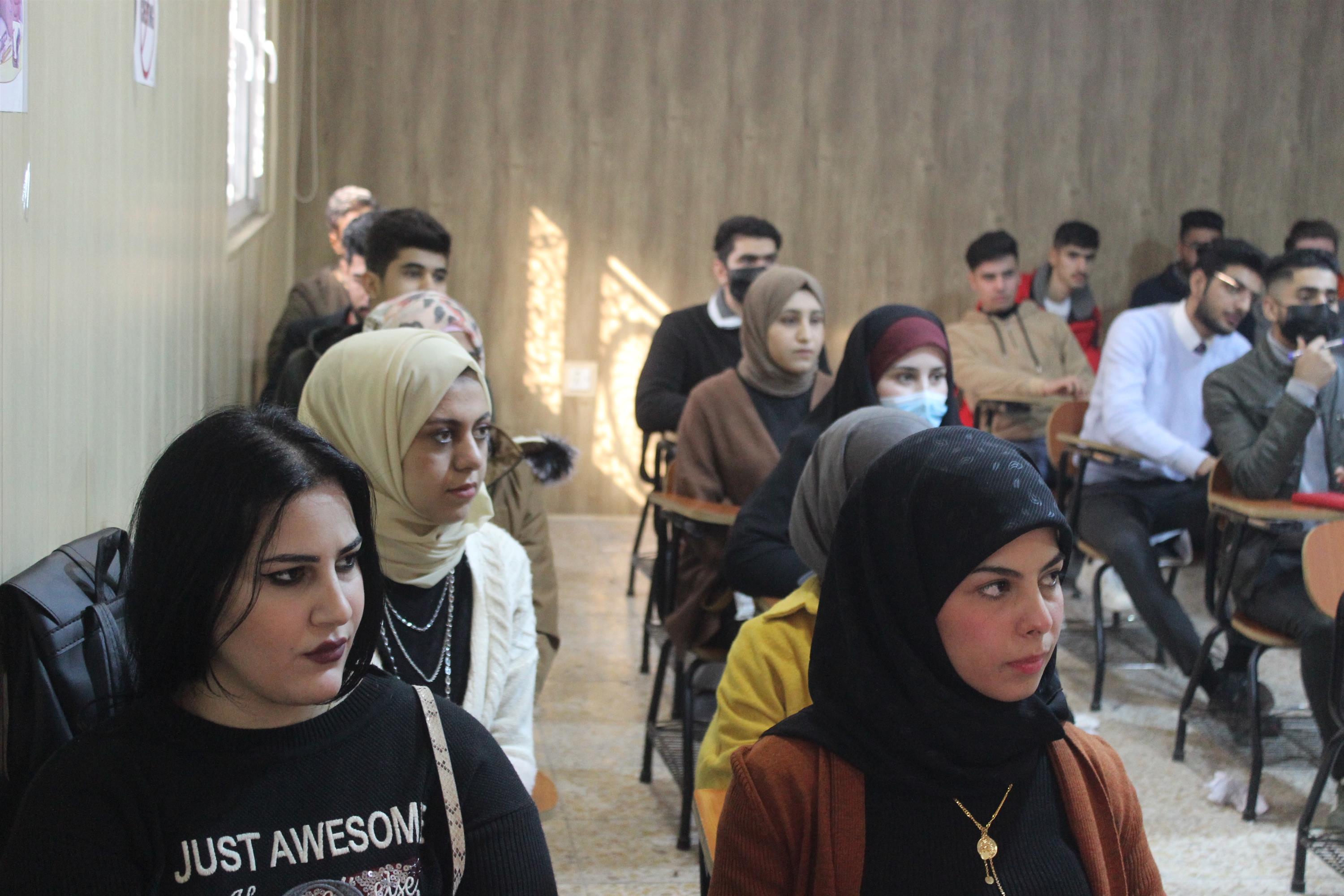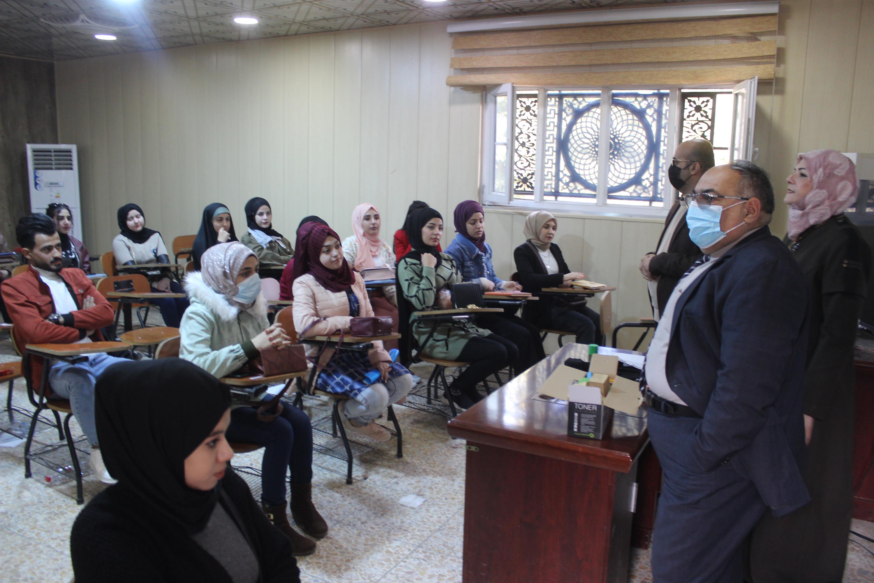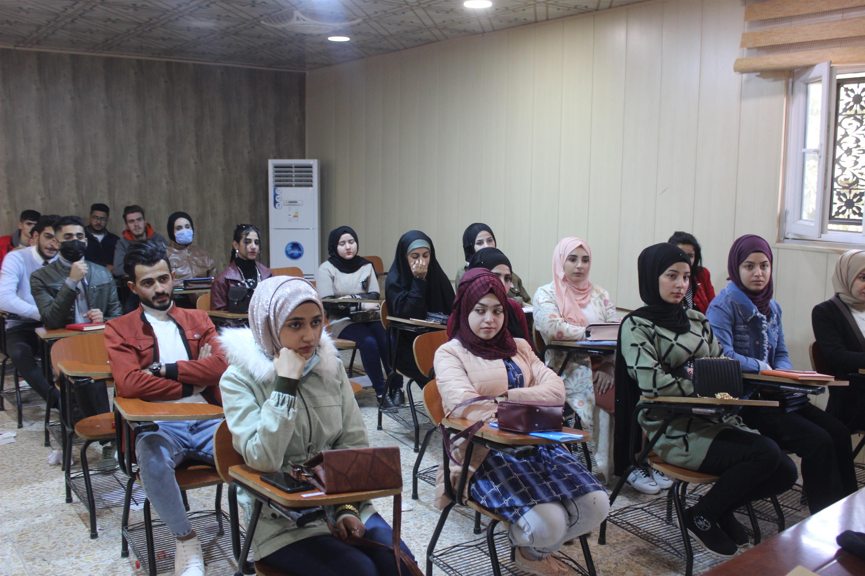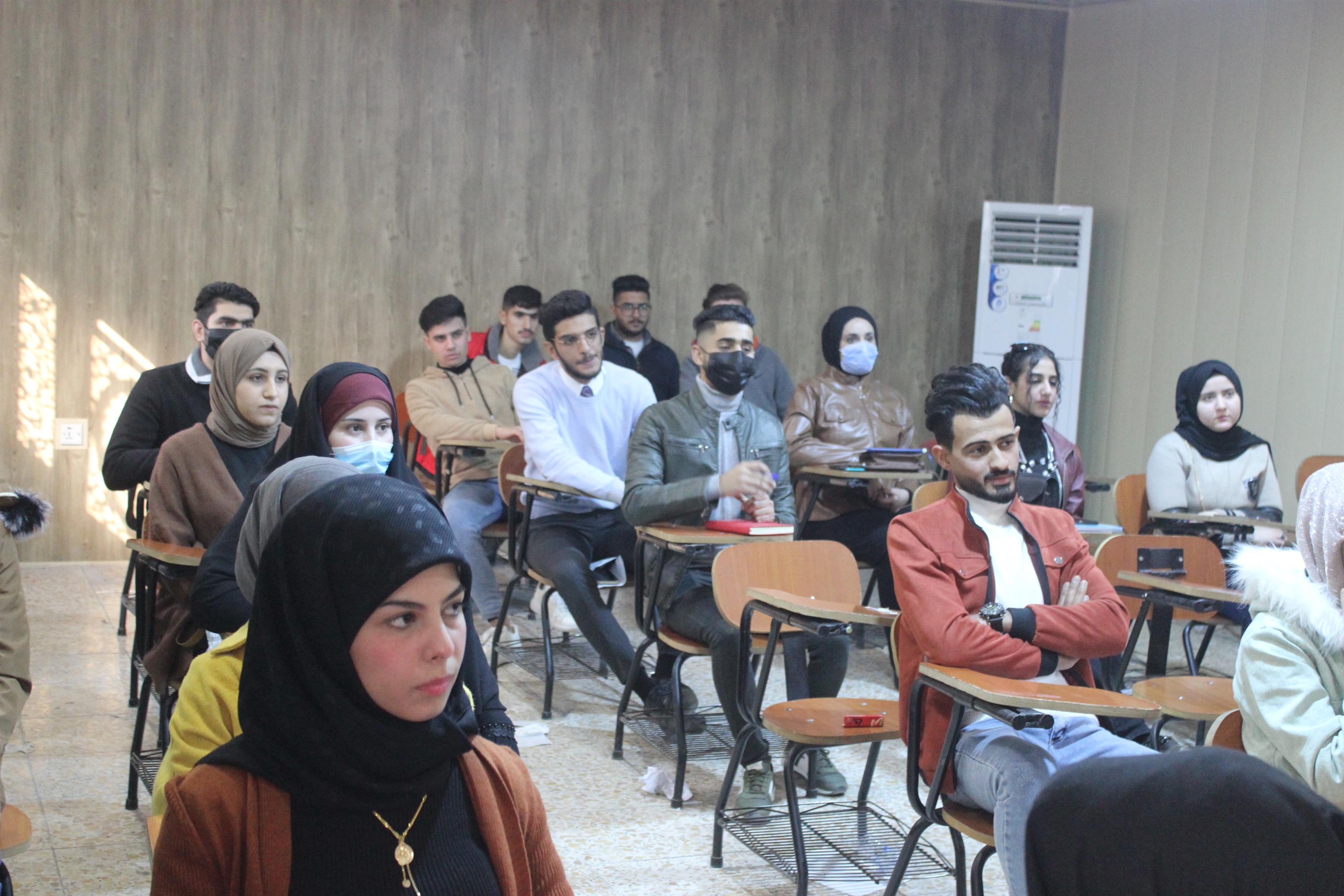 كما تطرق اللقاء الى النظام الدراسي المتبع في كليتنا واهميته موضحاً لهم نظام المقررات الدراسي وكيفية اختيار المقررات الدراسية واتباع تعليمات المشرف الاكاديمي .