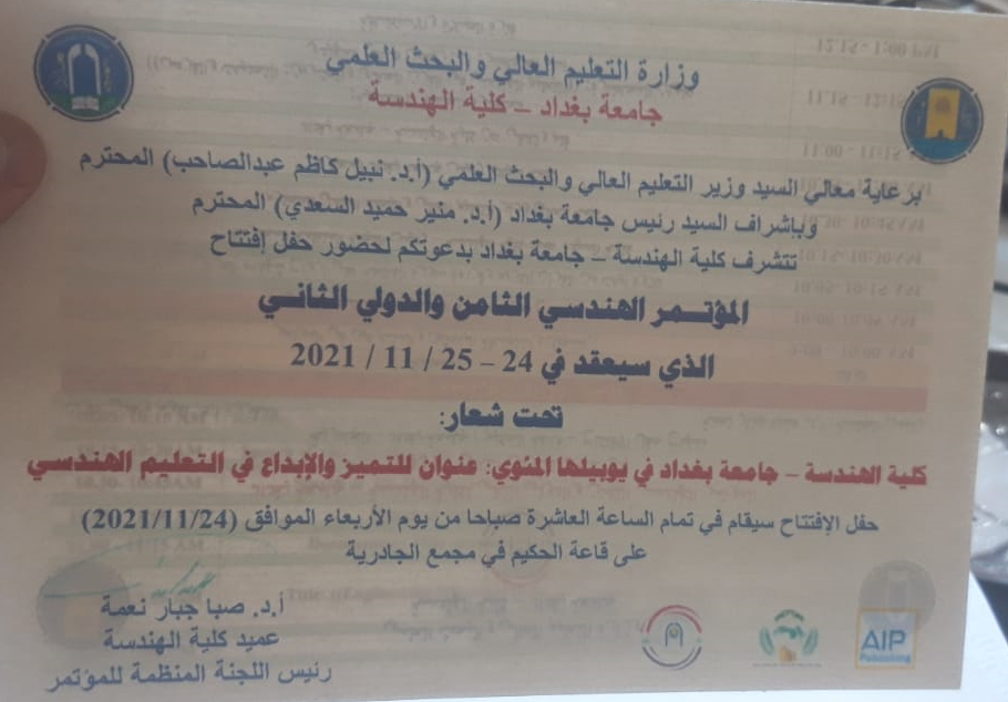 السيد عميد يشارك في المؤتمر المؤتمر الهندسي الثامن والدولي الثاني لكلية الهندسة – جامعة بغداد