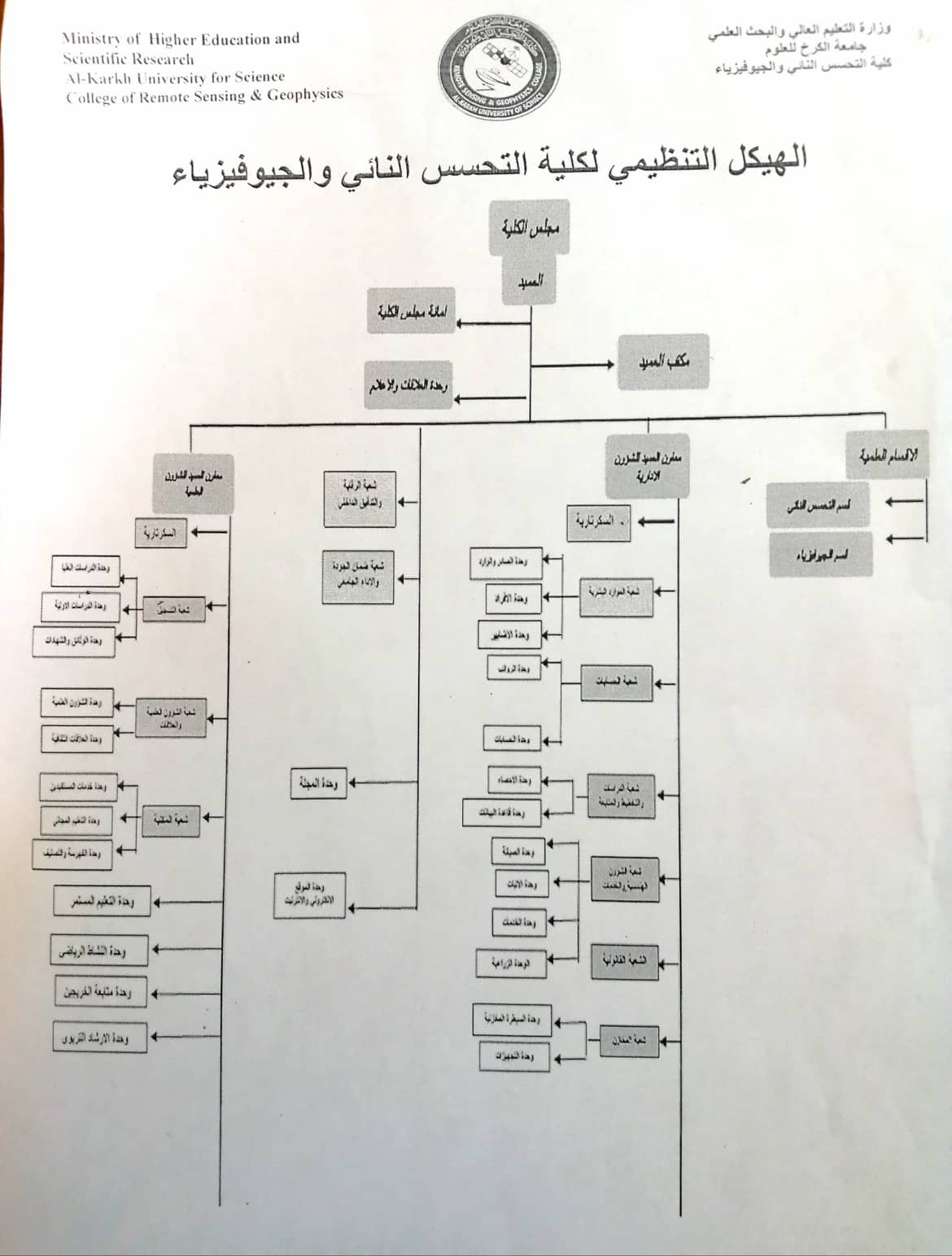 الهيكل التنظيمي لكلية التحسس النائي والجيوفيزياء