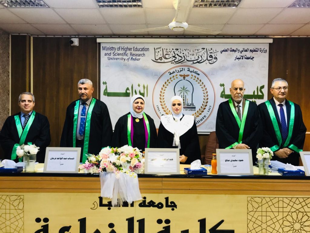 ترأست التدريسية في كلية التحسس النائي والجيوفيزياء أ.م.د. هند عبد الغفور اللجنة المناقشة لرسالة طالبة الماجستير (عائشة سعدون فالح) الموسومة: