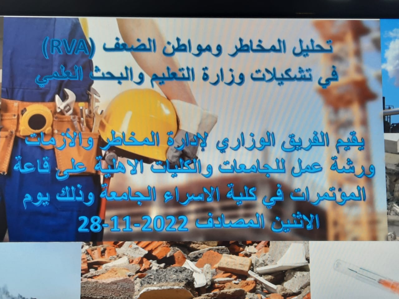 تدريسيون في كلية التحسس النائي والجيوفيزياء يشاركون في ورشة ادارة المخاطر والازمات