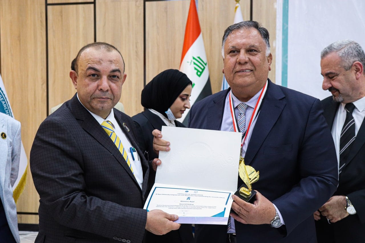 حصل الاستاذ الدكتور احمد عسكر نجف التدريسي في قسم الجيوفيزياء كلية التحسس النائي والجيوفيزياء جامعة الكرخ للعلوم على جائزة الباحث الاكاديمي العراقي المتميز للعام 2022 والممنوحة من قبل جامعة العين وتحت شعار