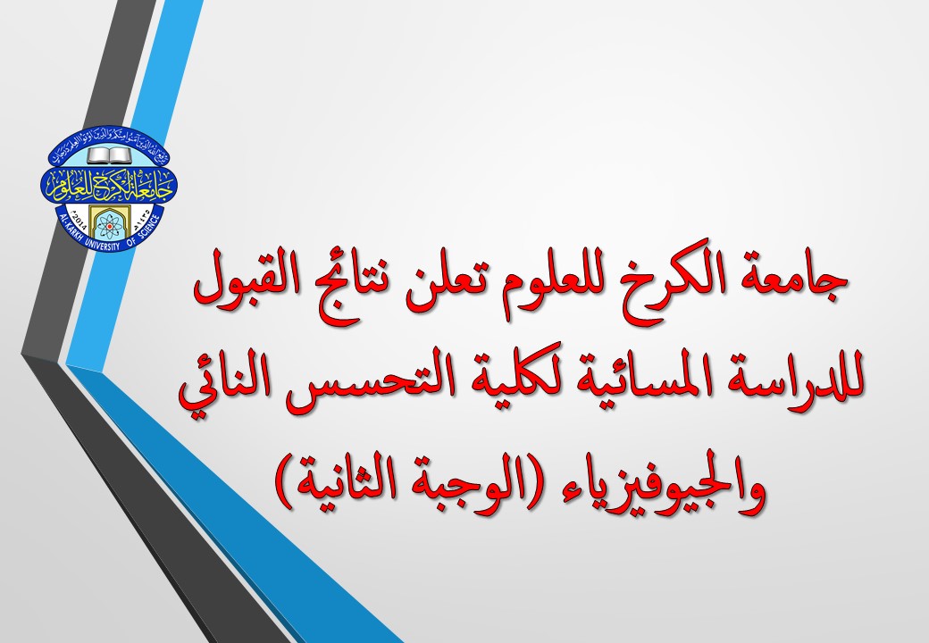 جامعة الكرخ للعلوم تعلن نتائج القبول للدراسة المسائية لكلية التحسس النائي والجيوفيزياء (الوجبة الثانية)