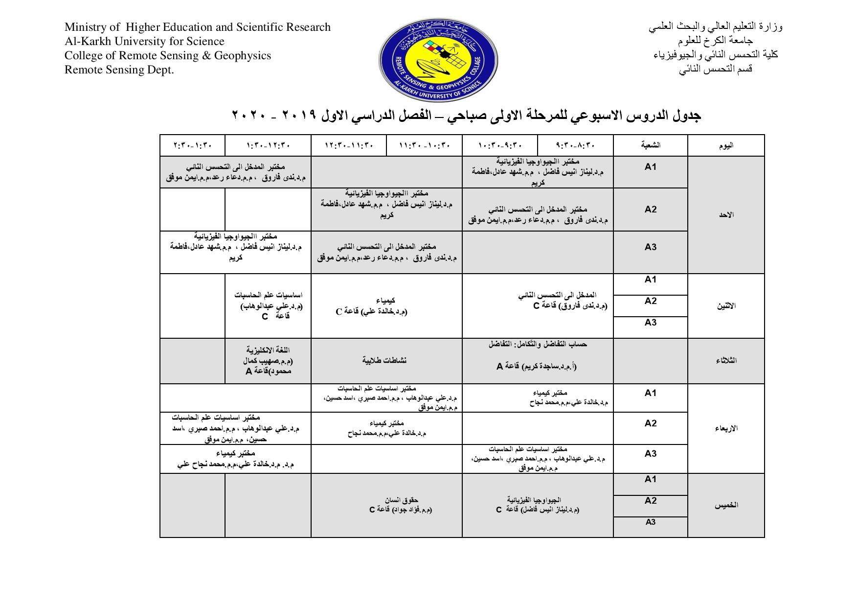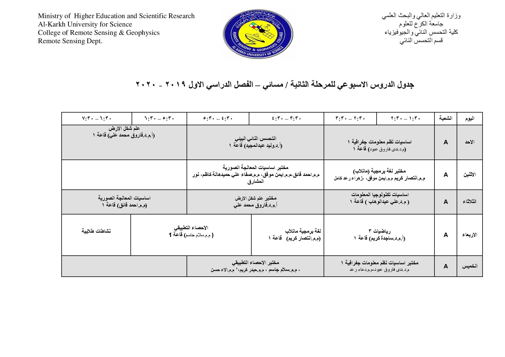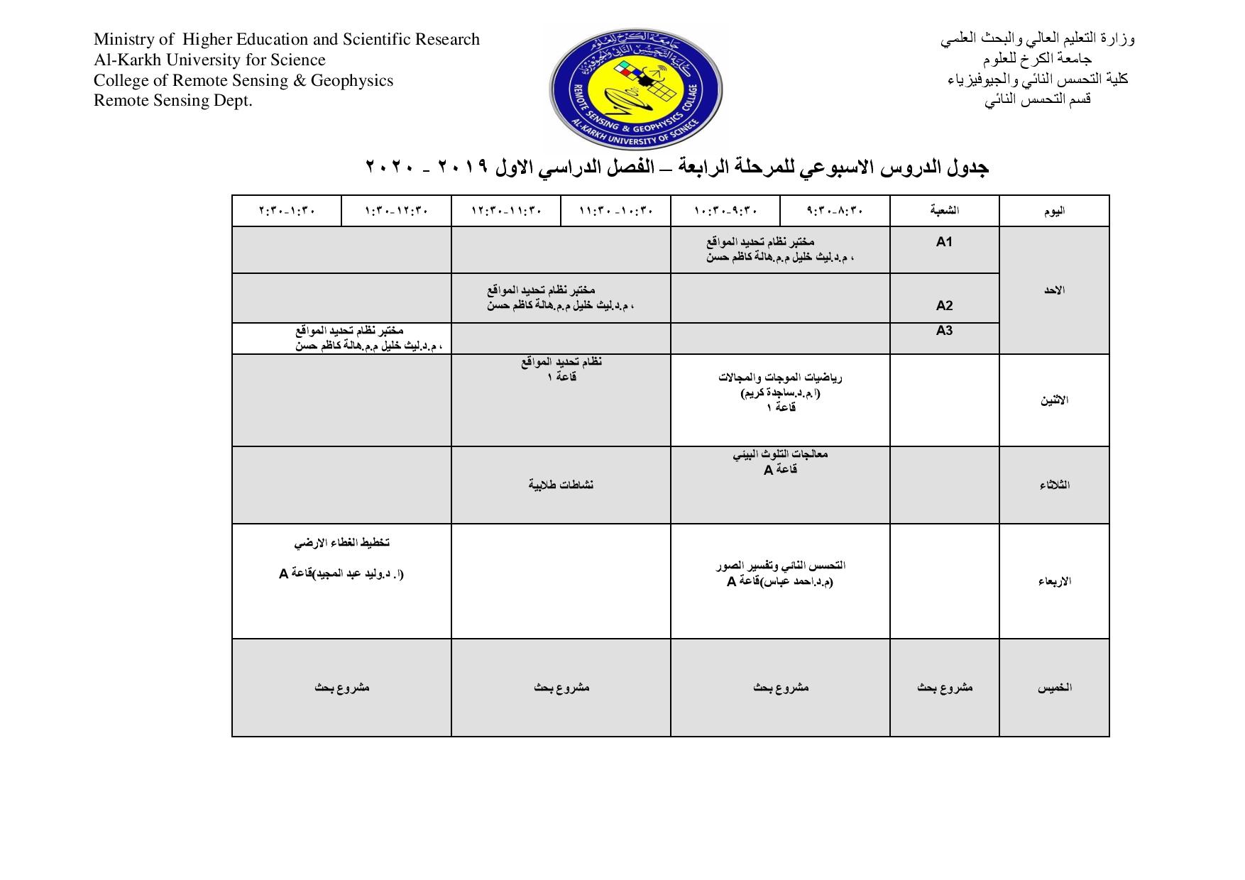 جداول الدروس الاسبوعية للمراحل كافة لاقسام كليتنا