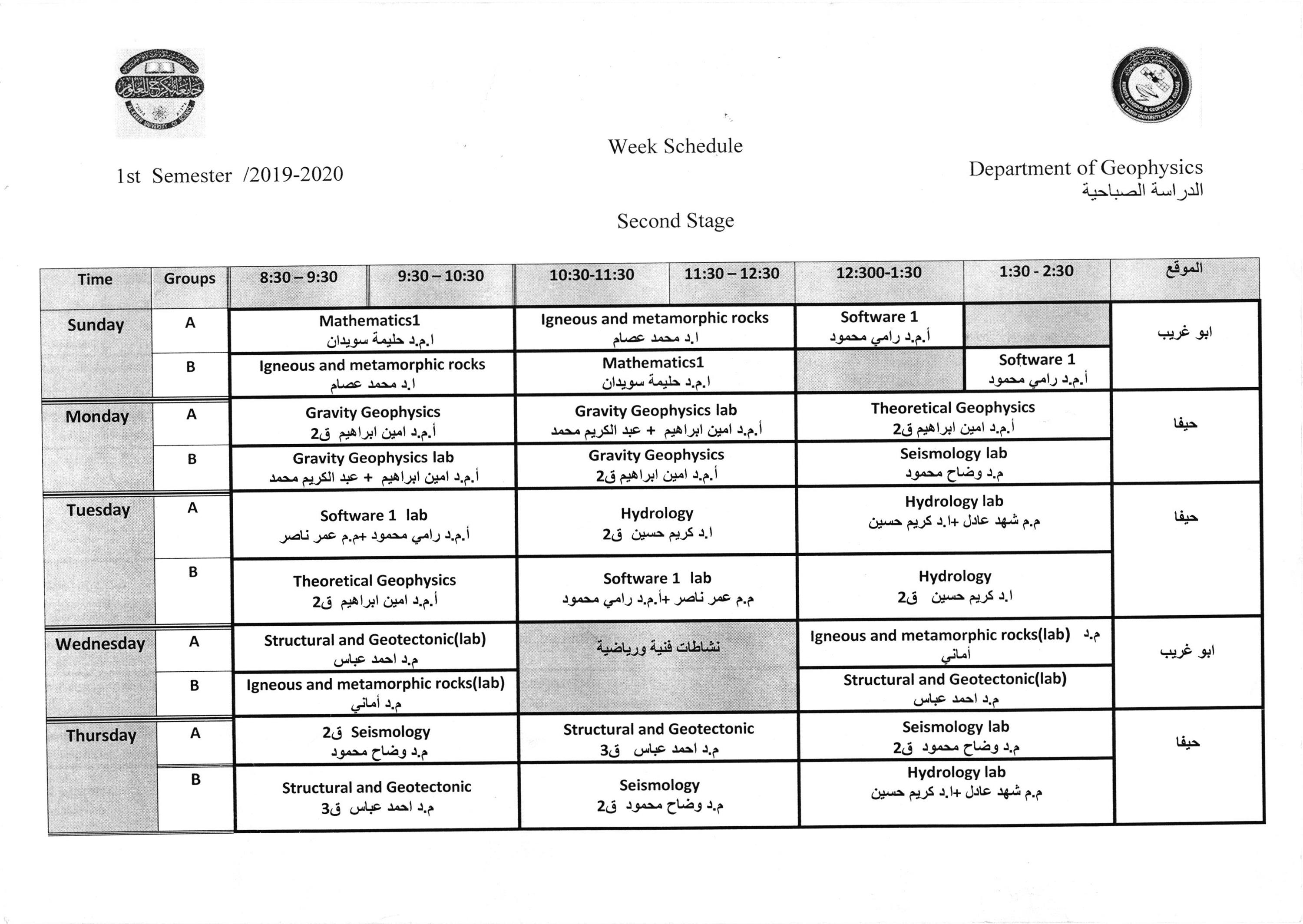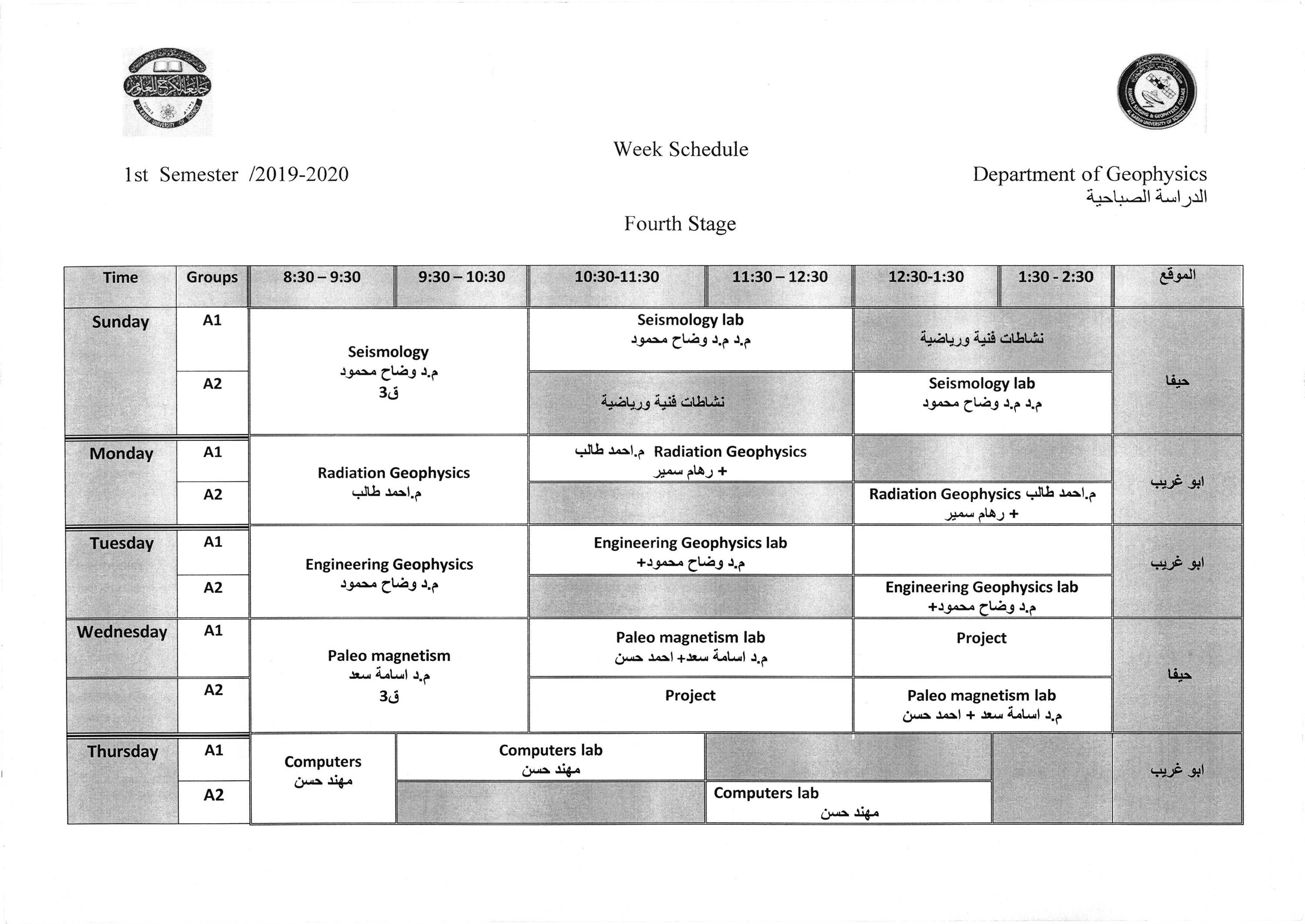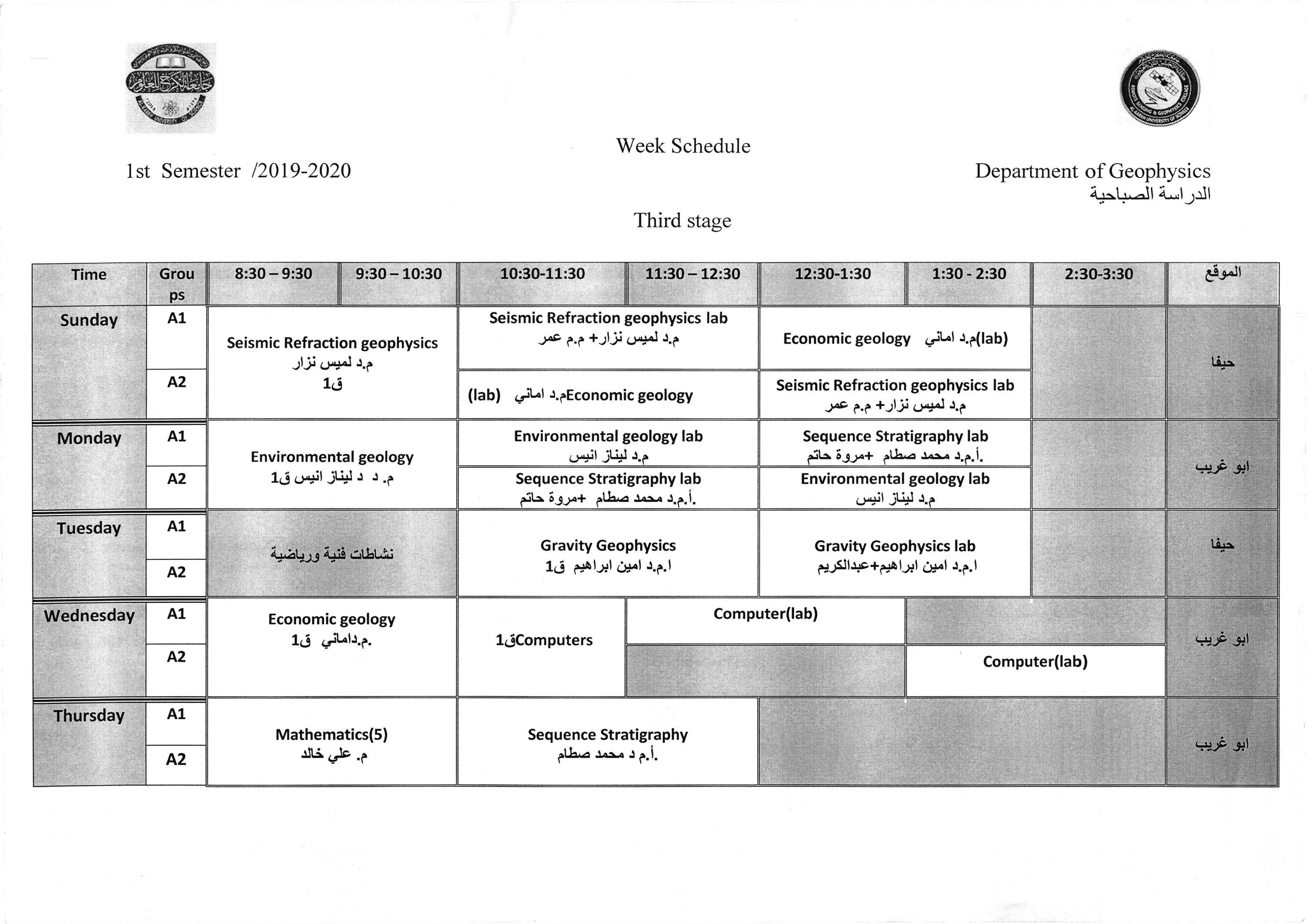 جداول الدروس الاسبوعية للمراحل كافة لاقسام كليتنا