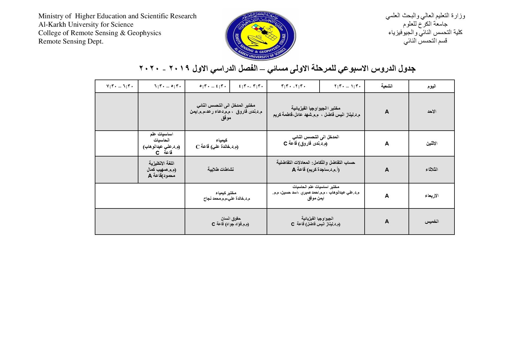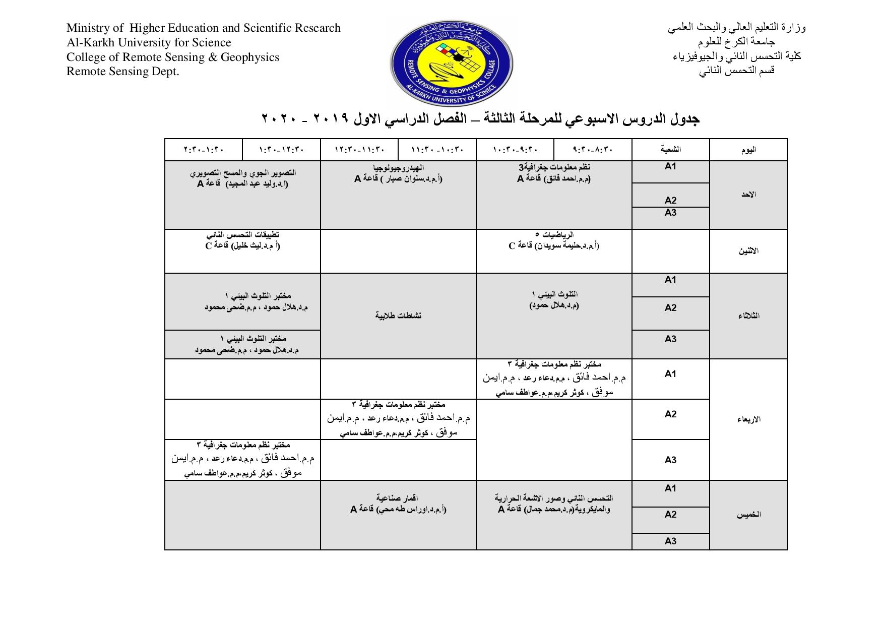 جداول الدروس الاسبوعية للمراحل كافة لاقسام كليتنا
