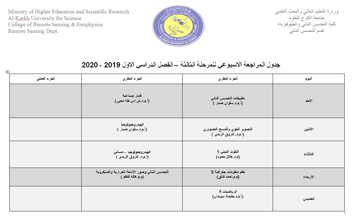 لقسمي التحسس النائي وقسم الجيوفيزياء .