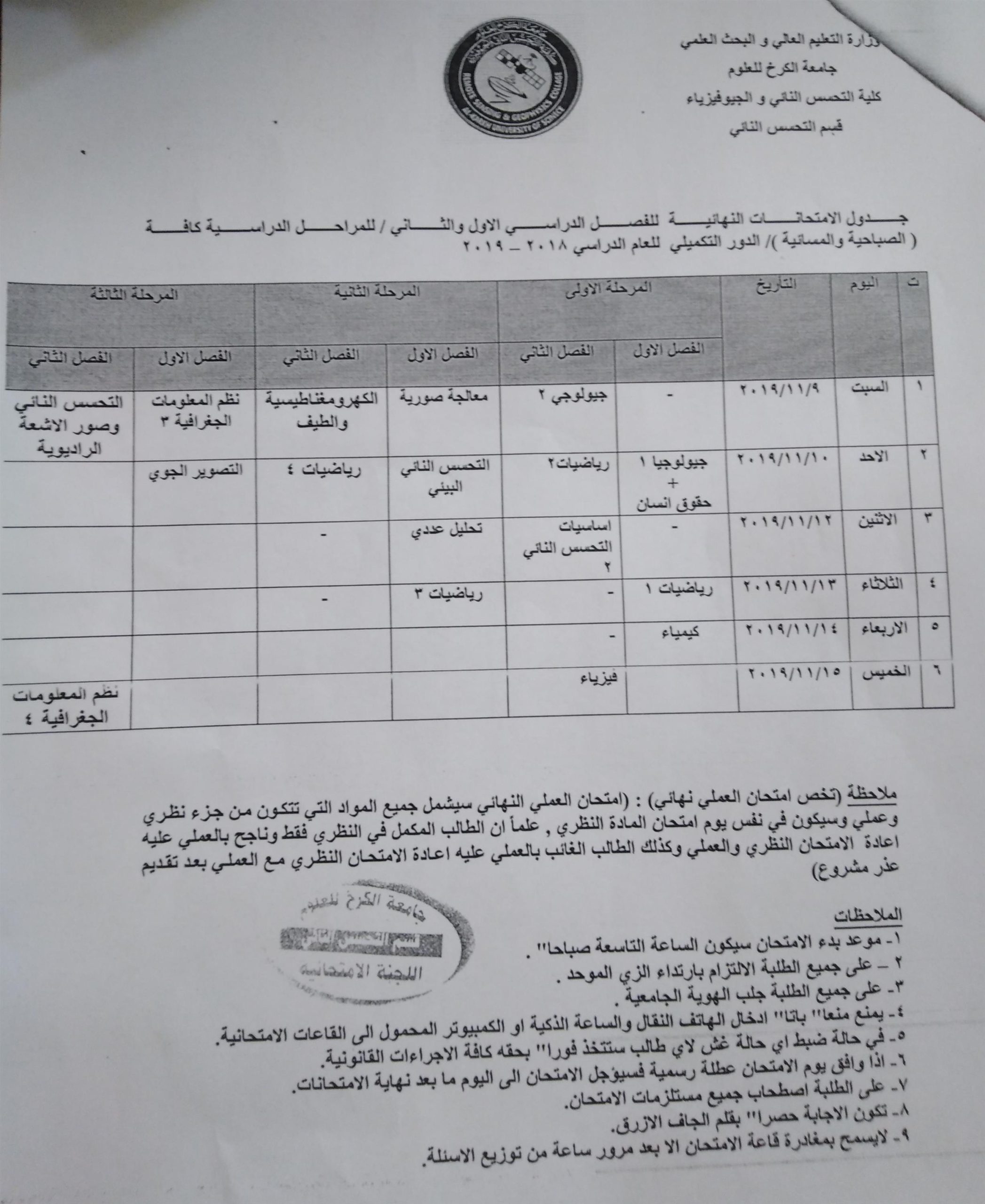 جدول الامتحانات الدور الثالث ( التكميلي ) Categories اخبار الكلية Date نوفمبر 7, 2019 Comments 2 comments هام جدا للطلبة جدول الامتحانات الدور الثالث ( التكميلي ) قسم التحسس النائي قسم الجيوفيزياء Share: admin6342 Previous post جدول الامتحانات الدور الثالث ( التكميلي ) نوفمبر 7, 2019 Next post كلية التحسس النائي والجيوفيزياء تستقبل العام الدراسي الجديد نوفمبر 11, 2019 You may also like عميد كلية التحسس النائي والجيوفيزياء يتفقد سير امتحانات نهاية الكورس الأول 4 يناير, 2026 كلية التحسس النائي والجيوفيزياء تنظم ورشة عمل بعنوان “هجرة الشباب هدر لقدرات المجتمع” 22 ديسمبر, 2025 جامعة الكرخ للعلوم تنظم المؤتمر التقويمي للاعتماد البرامجي لتعزيز جودة التعليم الأكاديمي 22 ديسمبر, 2025