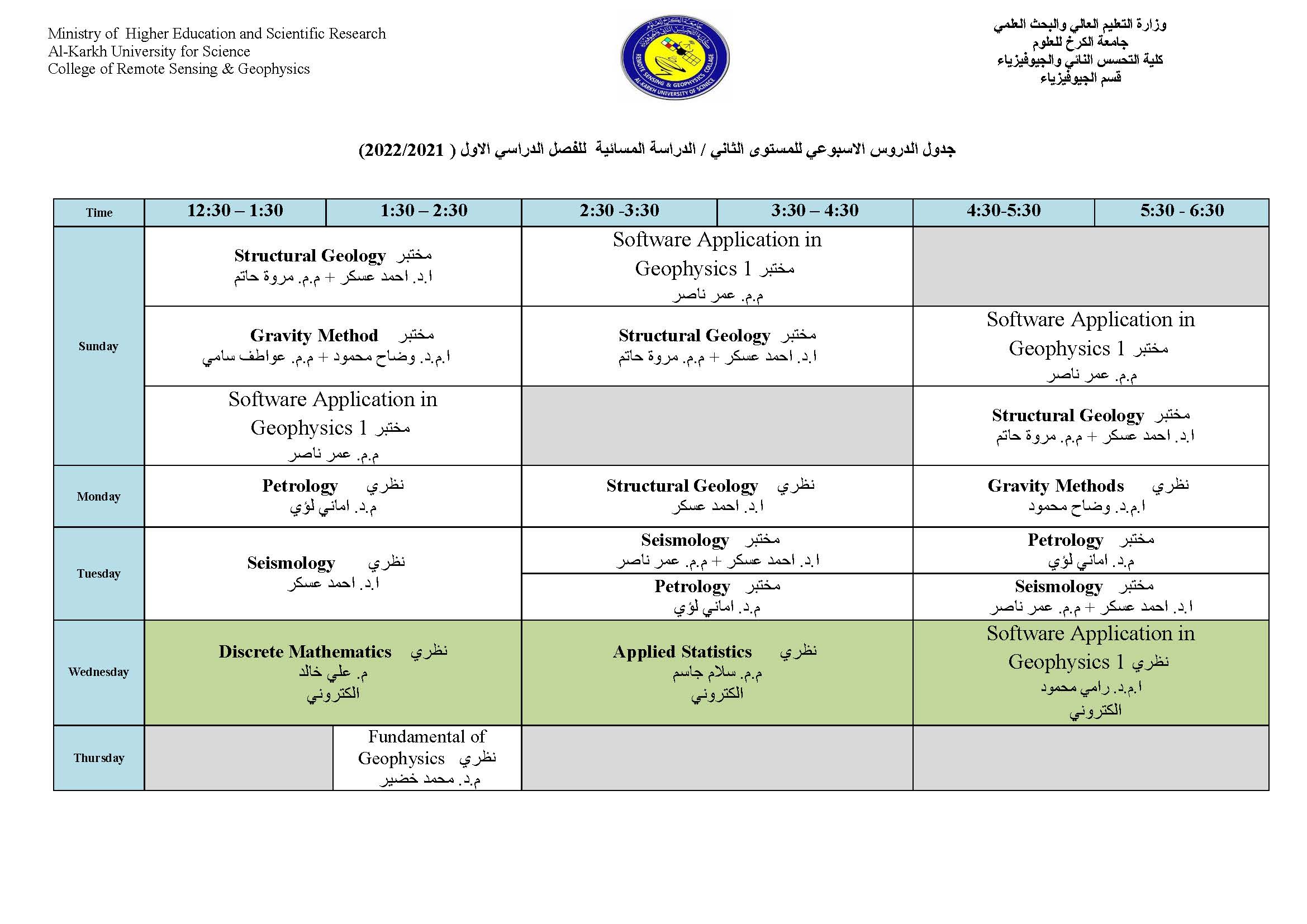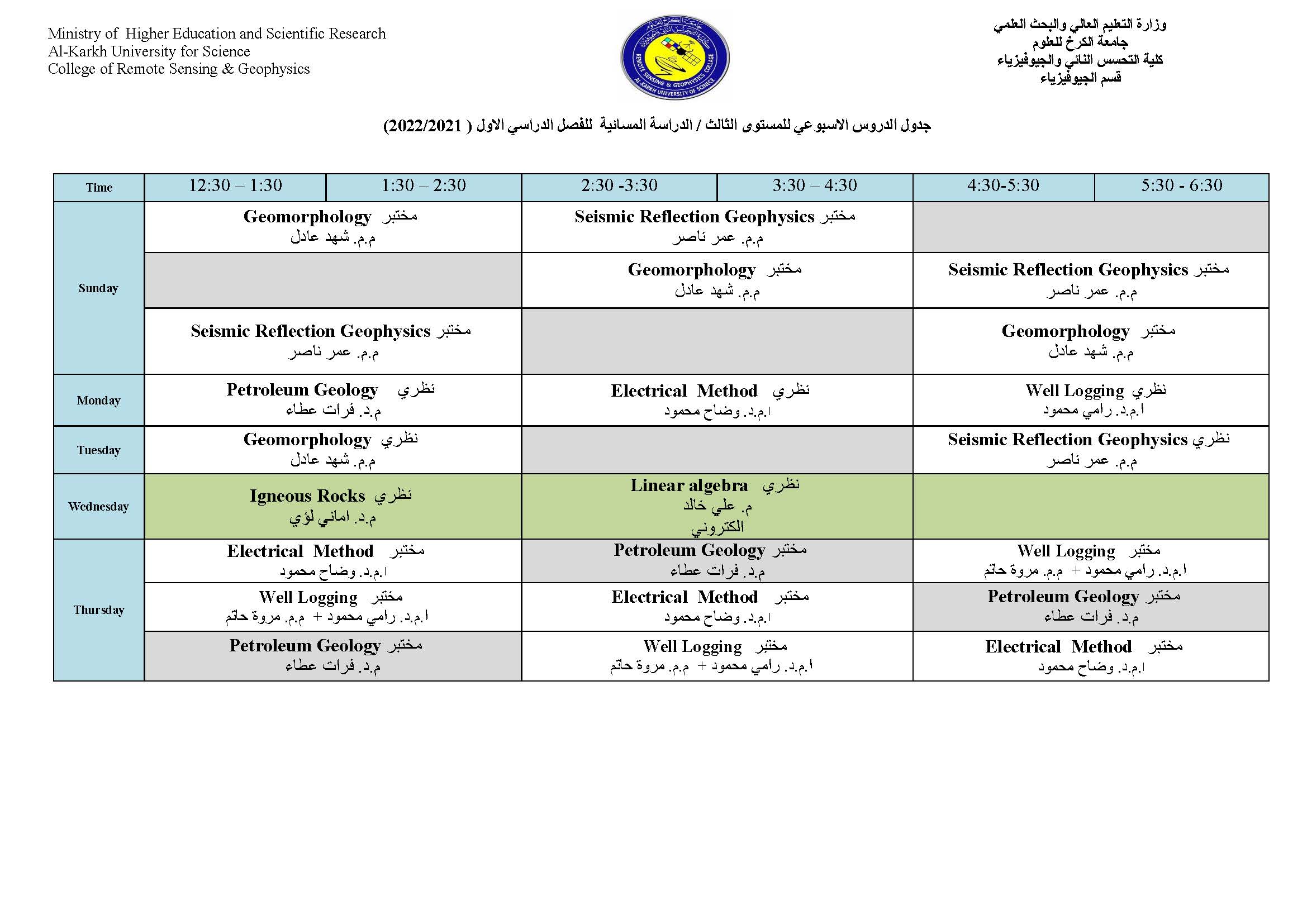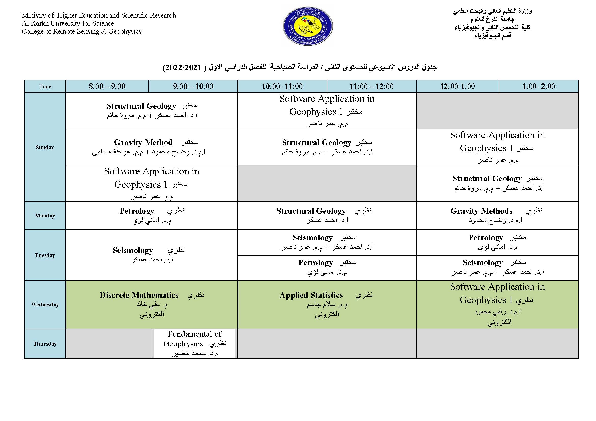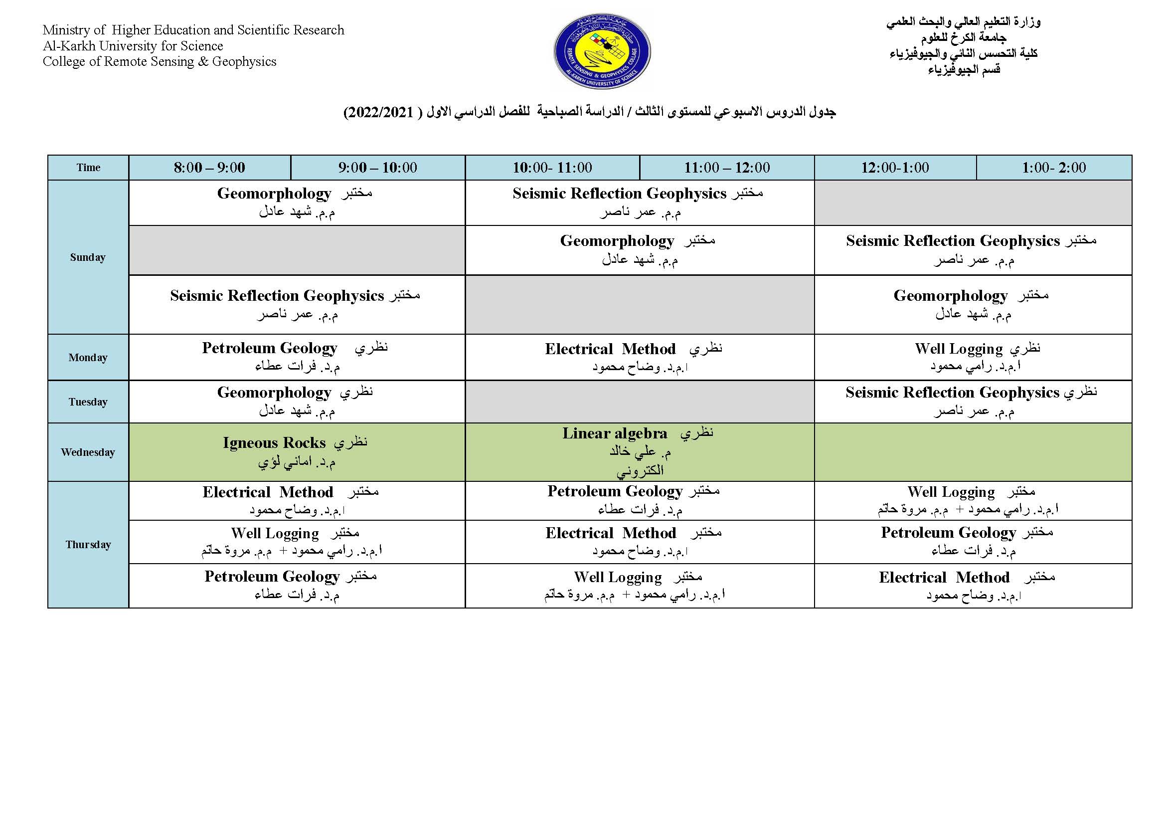 جدول الدروس الاسبوعي لقسم الجيوفيزياء الفصل الاول Categories لوحة الاعلانات Date أكتوبر 11, 2021 جدول الدروس الاسبوعي لقسم الجيوفيزياء الفصل الاول للعام الدراسي 2021-2022 للدراستين الصباحية والمسائية الاعلام والعلاقات العامة كلية التحسس النائي والجيوفيزياء Share: admin6342 Previous post جدول الدروس الاسبوعي لقسم الجيوفيزياء الفصل الاول أكتوبر 11, 2021 Next post جدول الدروس الاسبوعي لقسم التحسس النائي الفصل الاول أكتوبر 11, 2021 You may also like إعلان هام | إطلاق جدول مراقبات امتحانات الدراسات العليا 18 ديسمبر, 2025 كلية التحسس النائي والجيوفيزياء تعلن نتائج القبول الأولي للمتقدمين إلى الدراسات العليا للعام الدراسي 2025–2026 10 يوليو, 2025 إعلان أسماء المشمولين بأداء الامتحان التنافسي للعام الدراسي 2025–2026 22 يونيو, 2025