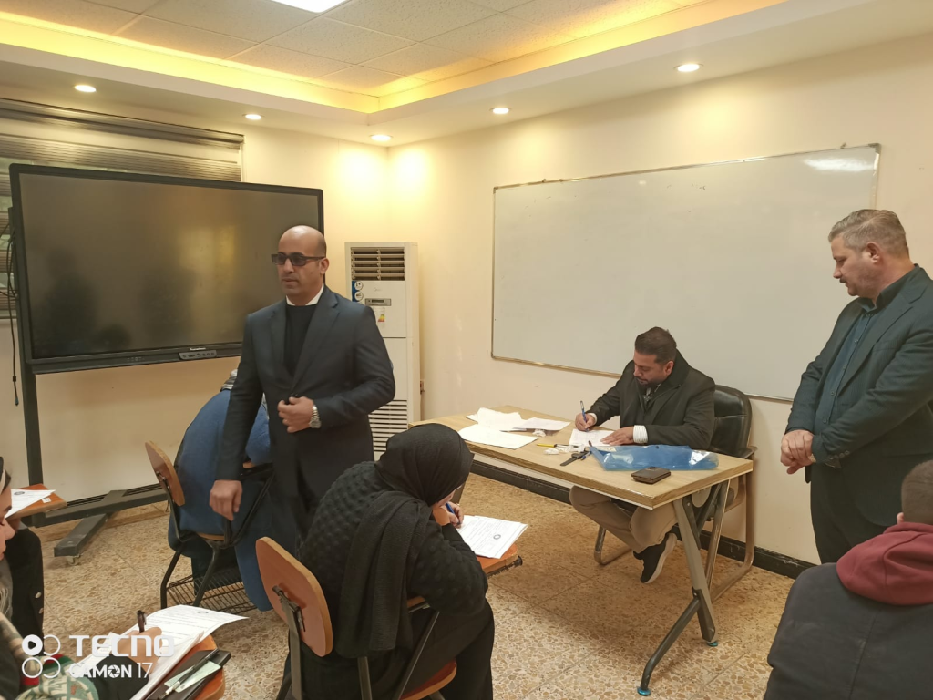 أجرى السيد عميد كلية التحسس النائي والجيوفيزياء، الأستاذ المساعد الدكتور أحمد عباس حسن المحترم، جولة تفقدية لمتابعة سير امتحانات نهاية الكورس الأول في عدد من القاعات الدراسية، يرافقه السيد معاون العميد للشؤون الإدارية، المدرس الدكتور عبد الصاحب جمعة المحترم، وذلك في إطار الحرص على المتابعة الميدانية المستمرة لسير العملية الامتحانية.