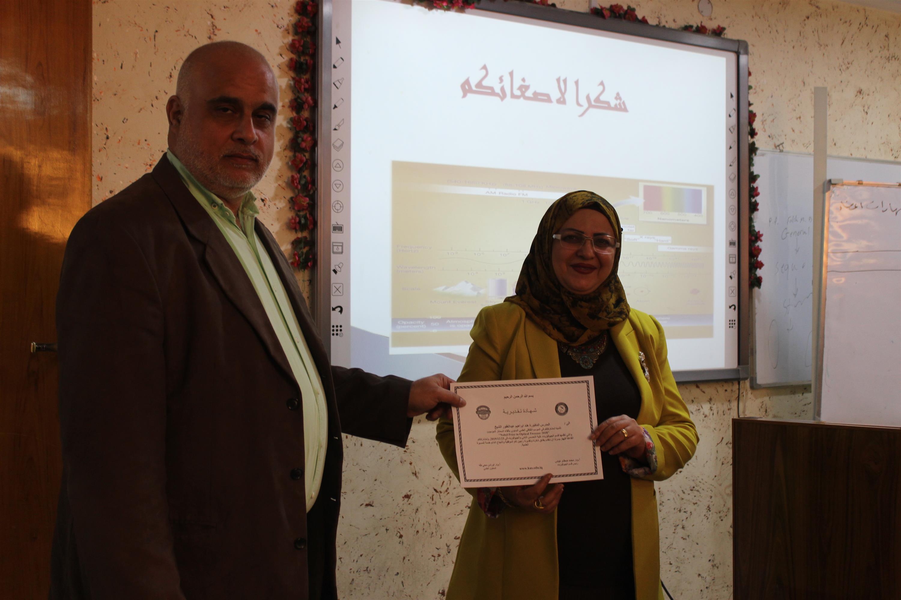 جائزة نوبل في تقنية الملقط الليزري لعام 2018 ، بحضور عدد من المختصين والتدريسيين في الكلية.