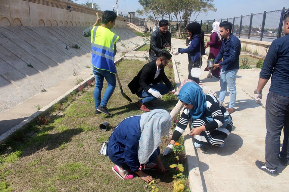 يذكر بأن طلبة جامعة الكرخ للعلوم ينظمون حملات تطوعية متتالية للتشجير والتنظيف والتوعية ببعض الظواهر والمواضيع التي تهم الفرد والمجتمع