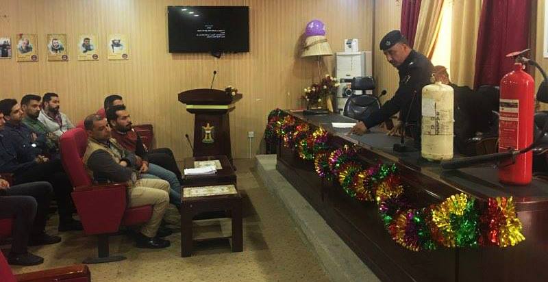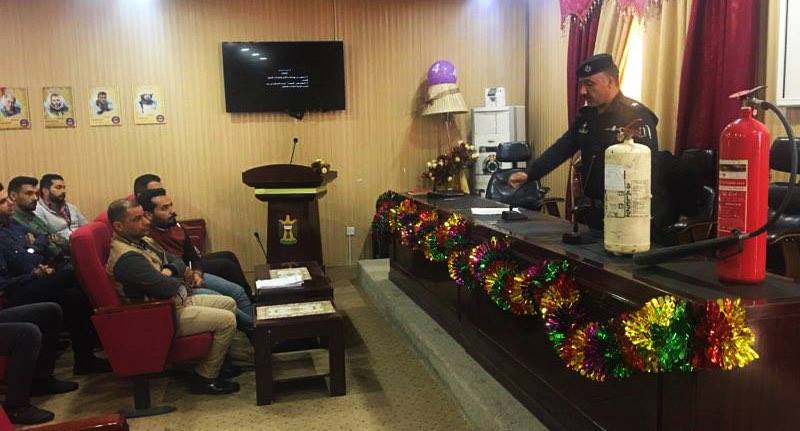 وتضمنت الدورة محاضرة القاها الملازم مهدي عباس محمد، عن الاساليب الحديثة في التعامل مع الحالات الطارئة والكوارث، والاليات الصحيحة في إخلاء المنشأت وأنقاذ الارواح والتعامل مع المواد الكهربائية والخطرة.
