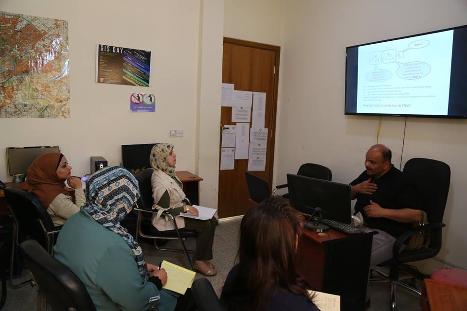 نظمت كلية التحسس النائي والجيو فيزياء دورة تدريبية بعنوان (LAndsat8 oLi )القاها الدكتور (اوراس محي طه )تهدف الدورة الى اطلاع الباحثين والاكاديميين على امكانات برنامج (ENVl) في اجراء المعالجة الرقمية للصور الفضائية الملتقطة بالتحسس اضافة الى ادارة نواتج المعالجة الرقمية بما يوفر للمسنفيدين من مصفوفات رقمية طيفية وحرارية تخدم ابحاثهم من خلال اعداد خرائط موضوعية تعبر عن اهم الخصائص الطبيعية لمنطقة عملهم كذلك تعريف المشتركين على اهم ادوات برنامج(Envl) وكيفية التعرف على الجوانب الطبفية والرقمية الاحصائية للصور الفضائية من خلال ادوات هذا البرنامج مع تنفيذ اجرتء المعايرة الرديو مترية للصور الفضائية مع اجراء ازالة للمناطقة الداكنة (Dark SUbtraction) ومن ثماجراء(Atmospheric Correction )بموديل (F LAASH)واجراء التصنيف غير الموجه وحساب الدلائل الطيفية (SPectral Indices)فضلآ عن حساب حرارة سطح الارض.تستمر الدورة التدريبية لمدة ثلاثة ايام من 14 _18-4- 2019
