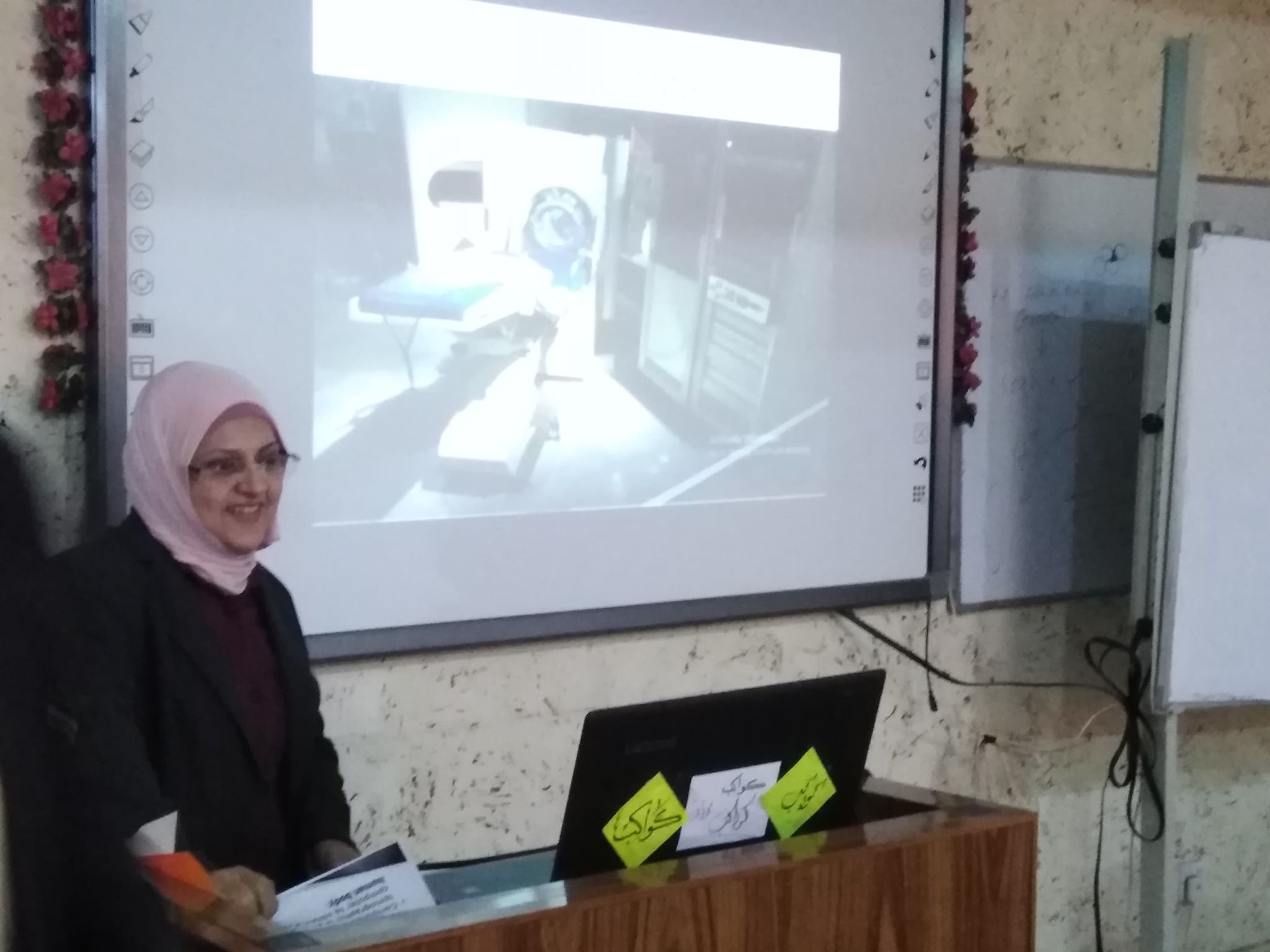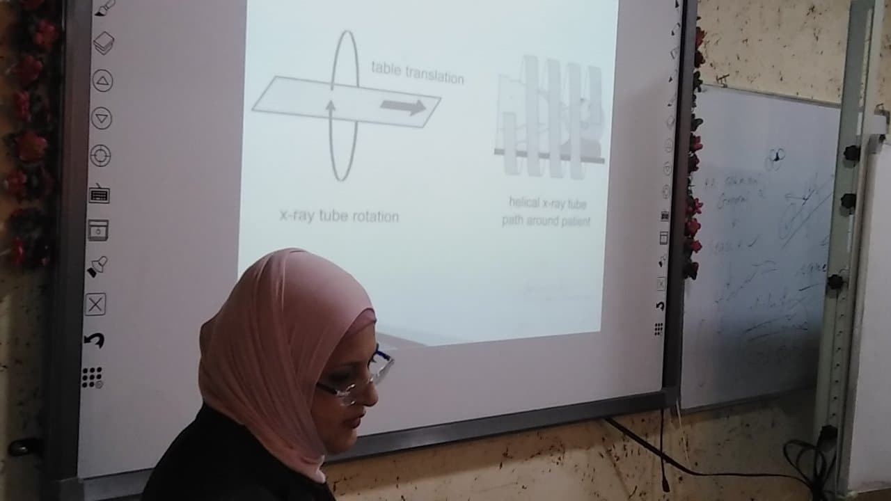 وذكرت التدريسية اهم فوائد استخدام الجهاز والاضرار الناجمة من الاستخدام التي تتضمن التعرض لجرع عالية من X-Ray ، وهي اشعة مؤينة ممكن ان تؤدي الى اضرار تصل الى الاصابة بالسرطان .