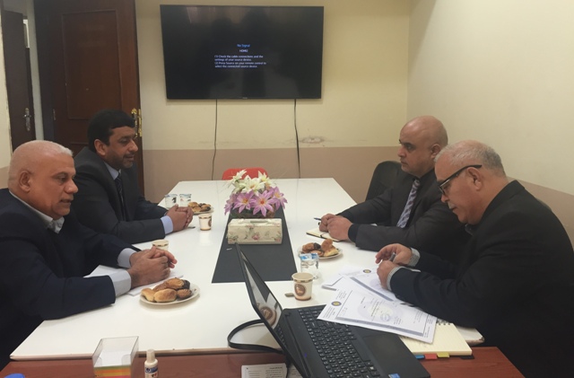 عقد السيد عميد كلية التحسس النائي والجيوفيزياء بجامعة الكرخ للعلوم أجتماع مع ممثلي دائرة الطاقات المتجددة في وزارة العلوم والتكنولوجيا المدمجة، وبحضور السيد معاون العميد للشؤون الادارية الدكتور فرات عطاء ورئيس قسم المجمعات الشمسية الحرارية في وزارة العلوم المهندس حسن عيسى محمد ومسؤول شعبة المركزات الحرارية البصرية المهندس عائد ابراهيم عويد.