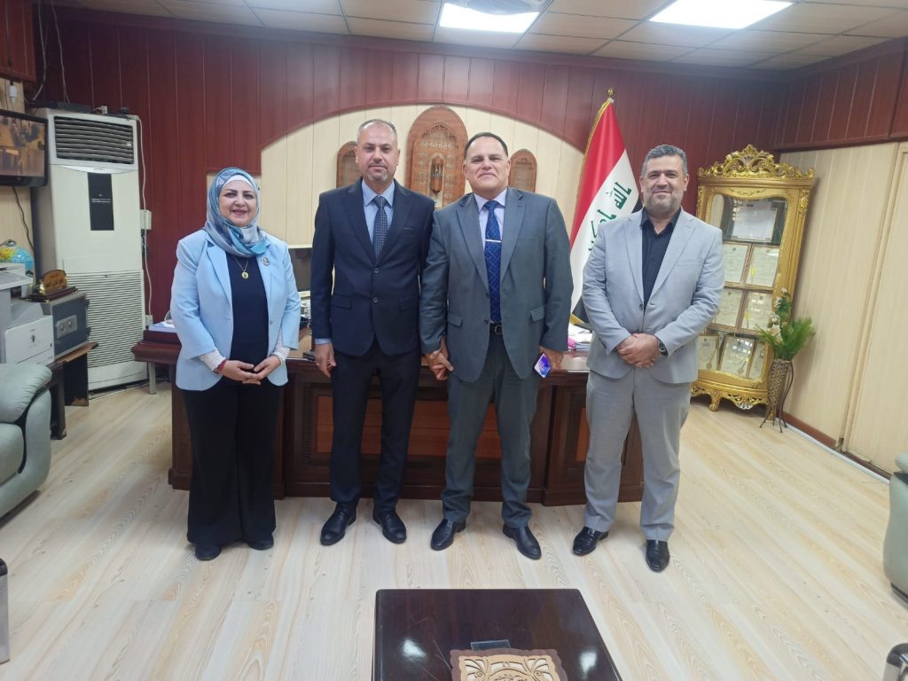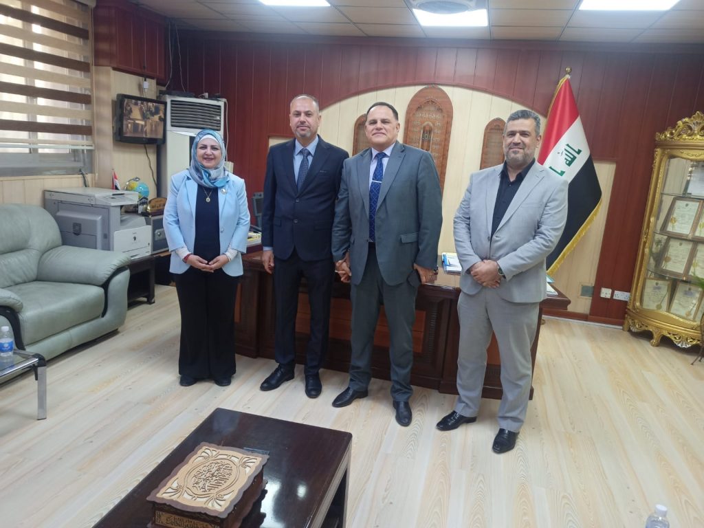 ضمن إطار تفعيل الزيارات العلمية وتوسيع آفاق التعاون مع مؤسسات الدولة، قام وفد من كلية التحسس النائي والجيوفيزياء، ممثلًا بالأستاذ المساعد الدكتور حيدر مدلول بدر، معاون العميد للشؤون الإدارية والمالية، والأستاذة المساعدة الدكتورة هند إبراهيم عبد الغفور، بزيارة إلى مركز بحوث البيئة والمياه والطاقات المتجددة في وزارة العلوم والتكنولوجيا، وذلك يوم الثلاثاء الموافق 29 أكتوبر 2024.