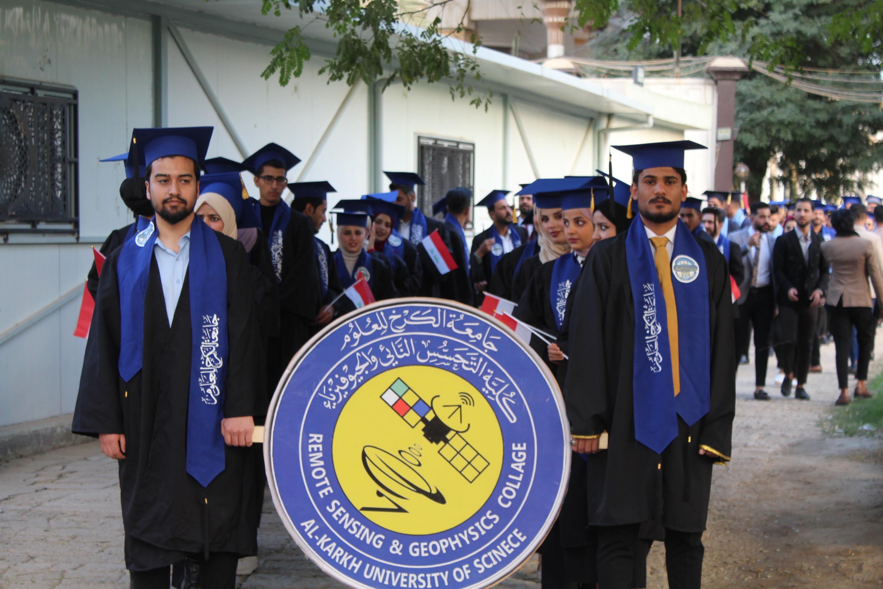 زينت رايات كوكبة من الطلبة الخريجين في كلية التحسس النائي والجيوفيزياء جامعة الكرخ للعلوم للعام الدراسي 2021-2022، سماء العلم والمعرفة بحفل التخرج السنوي المركزي لجامعة الكرخ للعلوم ، راية شامخة حلقت مرفرفة بسواعد الطلبة الجدد من خريجي كلية التحسس النائي والجيوفيزياء في جامعة الكرخ للعلوم لتنطلق منتهجة بعلمها ومعارفها لمسارات عمل جديدة ومتطورة خدمة لأبناء مجتمعنا الكريم.