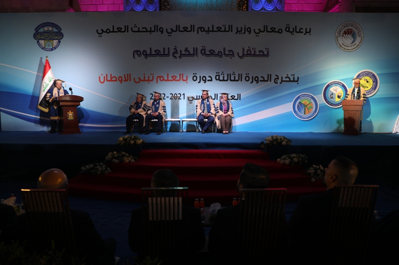 فيما عبر معالي وزير التعليم العالي والبحث العلمي الدكتور نعيم العبودي في كلمته عن مباركته بتخرج طلبة جامعة الكرخ للعلوم .