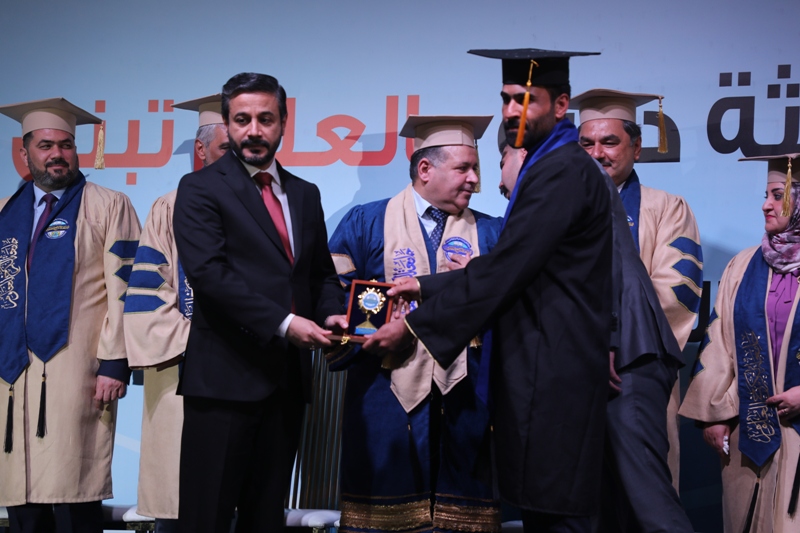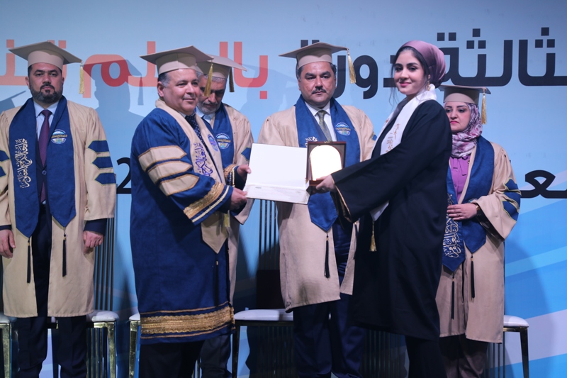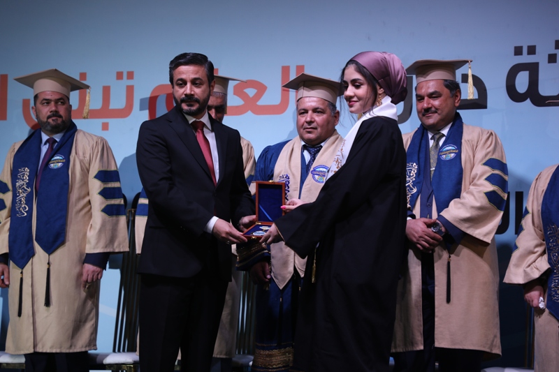 وفي ختام الحفل، كرمت الجامعة الملاك التدريسي في أقسام الكليات والطلبة المتخرجين الأوائل، كما تم تكريمهم من قبل معالي وزير التعليم العالي والسادة رؤساء جامعات بغداد والتقنية الوسطى وديالى والجامعة العراقية وجامعة العين.