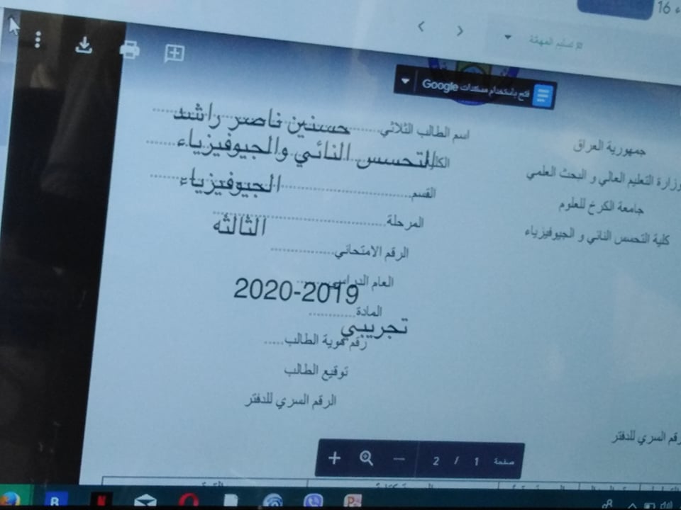 اذ تم وبعون الله خوض هذه التجربة وللمرة الاولى في تاريخ الجامعة وتحقق ذلك بشكل فاق التوقع وقد اعتمدت كلية التحسس النائي والجيوفيزياء نظام google classroom في اداء الامتحانات مع اعتماد وسائل بديلة للتواصل مع الطلبة اثناء فترة الامتحان منها الواتس والتليكرام والاتصال بالموبايل وقد كانت فرحتنا لا توصف ونحن نجني ثمرة التعب في الاشهر الماضية ونساهم في عدم خسارة العام الدراسي بسبب انتشار وباء كورونا..