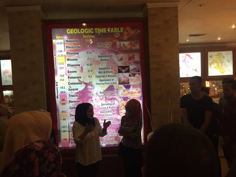 تضمنت السفرة زيارة المتحف الجيولوجي في الهيئة والتعرف على الاهمية الاقتصادية للتكوينات العرافية، وتاريخ هيئة المسح الجيولوجي والتعدين في رفد سوق العمل العراقي بالمتطلبات اللازمة من مواد بناء وخامات ومعادن صناعية، بالاضافة إلى زيارة المختبرات المتخصصة بالفحوصات المختبرية والتعرف على طبيعة العمل من أعمال مختبرية وفحوصات جيوكيميائية.