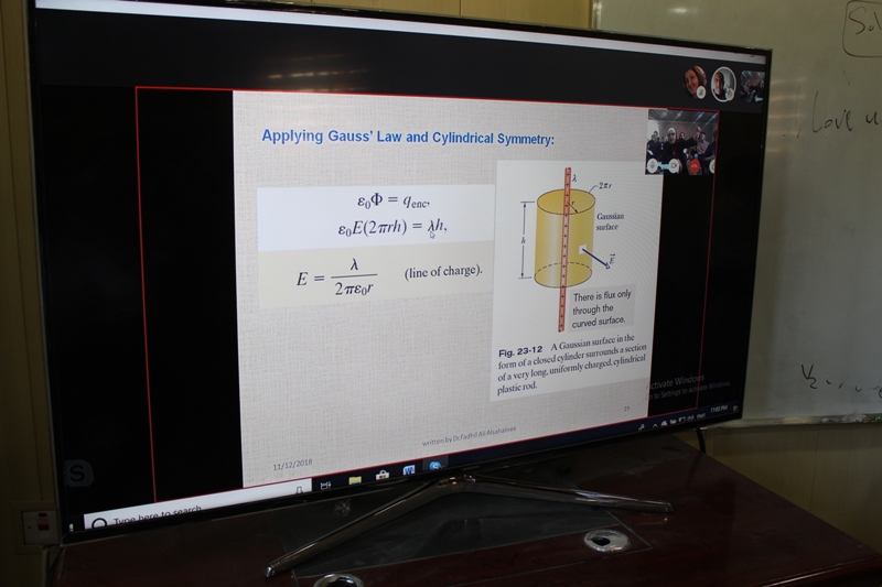 ويتضمن البرنامج محاضرات عن مادة الفيزياء الكهربائية للمرحلة الثانية باشراف الدكتورة هند ابراهيم عبد الغفور تدريسية في قسم الجيوفيزياء وبالتعاون مع الدكتور فاضل علي السهلاني وهو استاذ عراقي مغترب في جامعة اوكلاهوما الاميركية عبر الانترنت. والقى السهلاني محاضرته عن المجال الكهربائي ، وسطح كاوز بحضور طلبة المرحلة الثانية وتضمن المحاضرة نقاشات توضيحية من قبل الدكتور هند ابراهيم مع الطلاب علما ان البرنامج محاضرات عن الفيزياء المغناطسية للمرحلة الثانية باشراف الدكتور محمد خضير التدريسي في جامعة الكرخ للعلوم وبالتعاون مع الدكتور فاضل علي السهلاني.