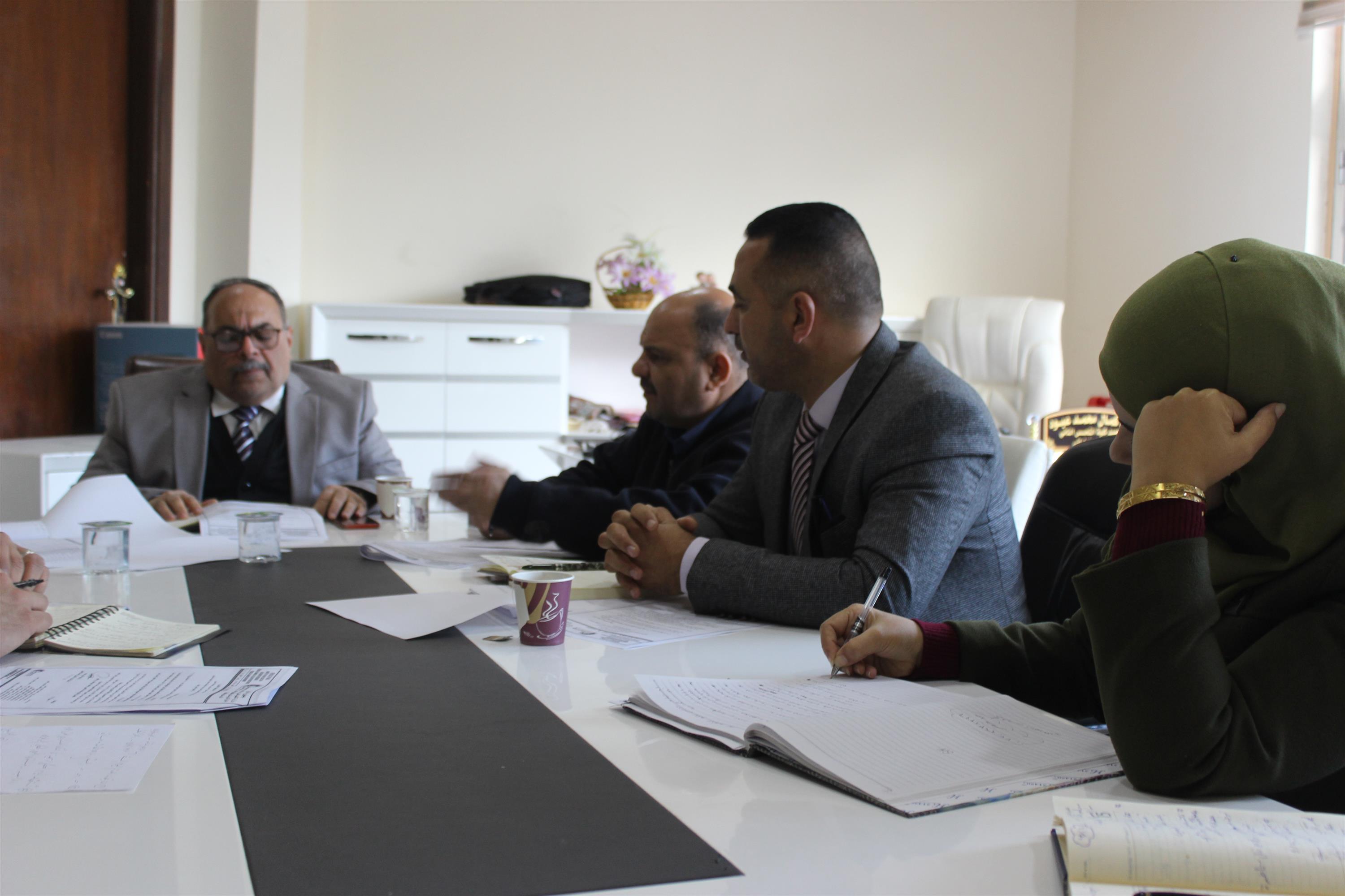 برئاسة السيد عميد كلية الاستاذ الدكتور كمال محمد عبود ، وبحضور السادة معاونين العميد  للشؤون الإدارية والعلمية، والسادة رؤساء الاقسام العلمية ومسؤول اعلام الكلية .