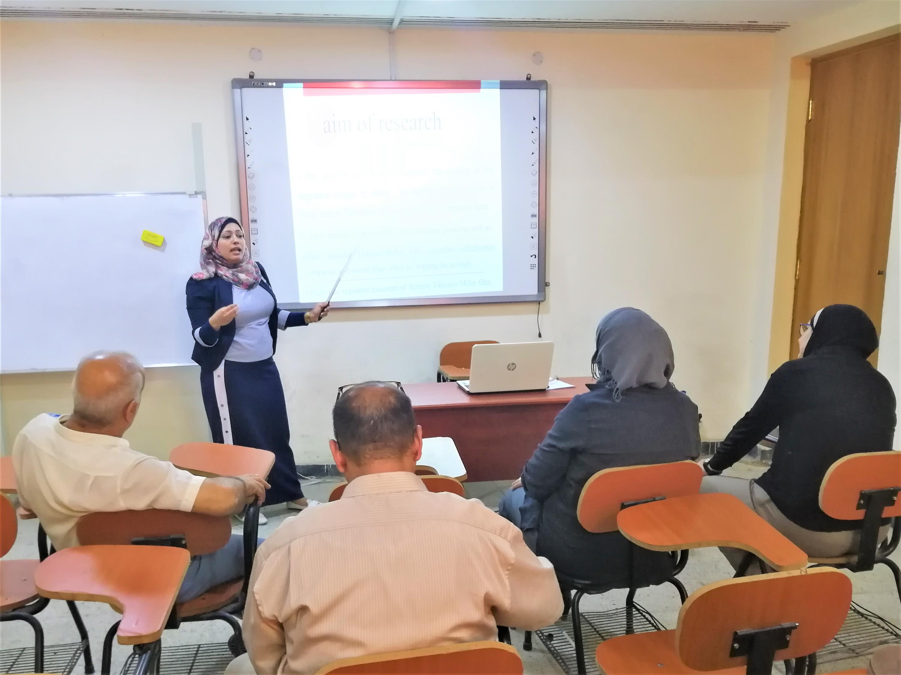 محاضرة بعنوان ( ترميم الصورة الرقمية باستخدام لوغارتمية تكنهوف ملير فلتر ) في كلية التحسس النائي والجيوفيزياء