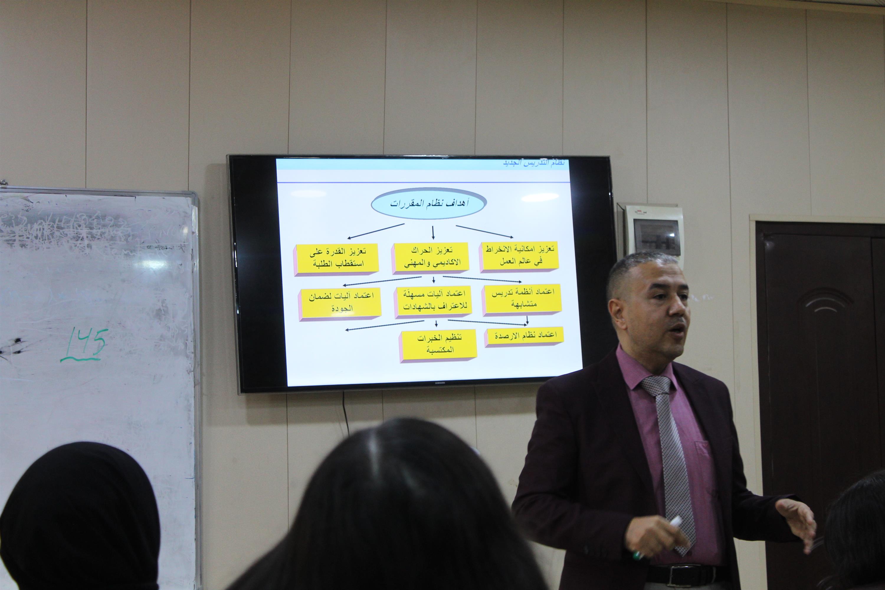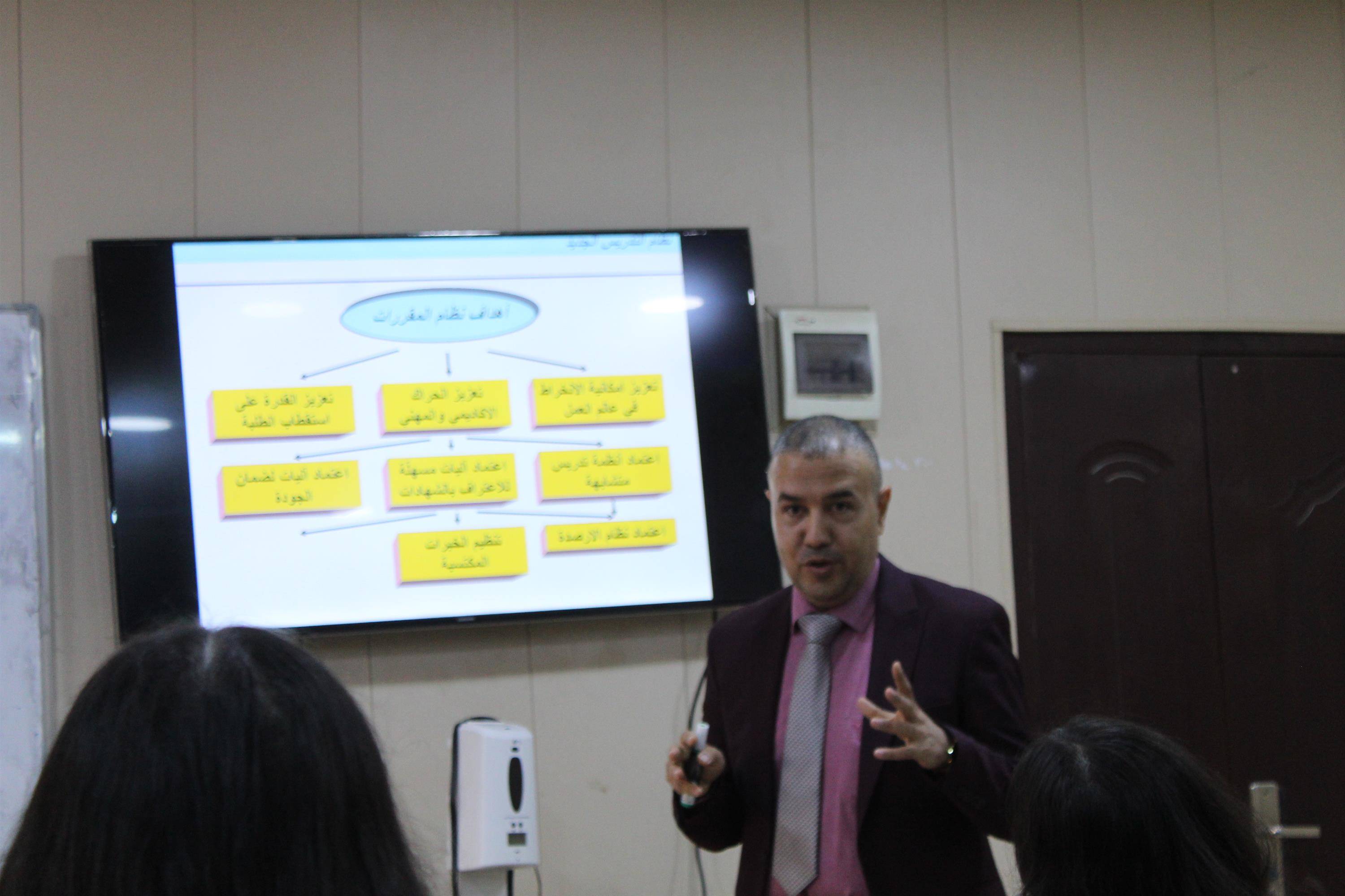 القاها السيد رئيس قسم الجيوفيزياء الدكتور رامي محمود عيدان تضمنت التعريف بنظام المقررات واهميتها واهدافه وبين اوجه الاختلاف المهم بين النظام الفصلي او السنوي وبين نظام المقررات موضحا حميع المصطلحات والتعريفات بالنظام .