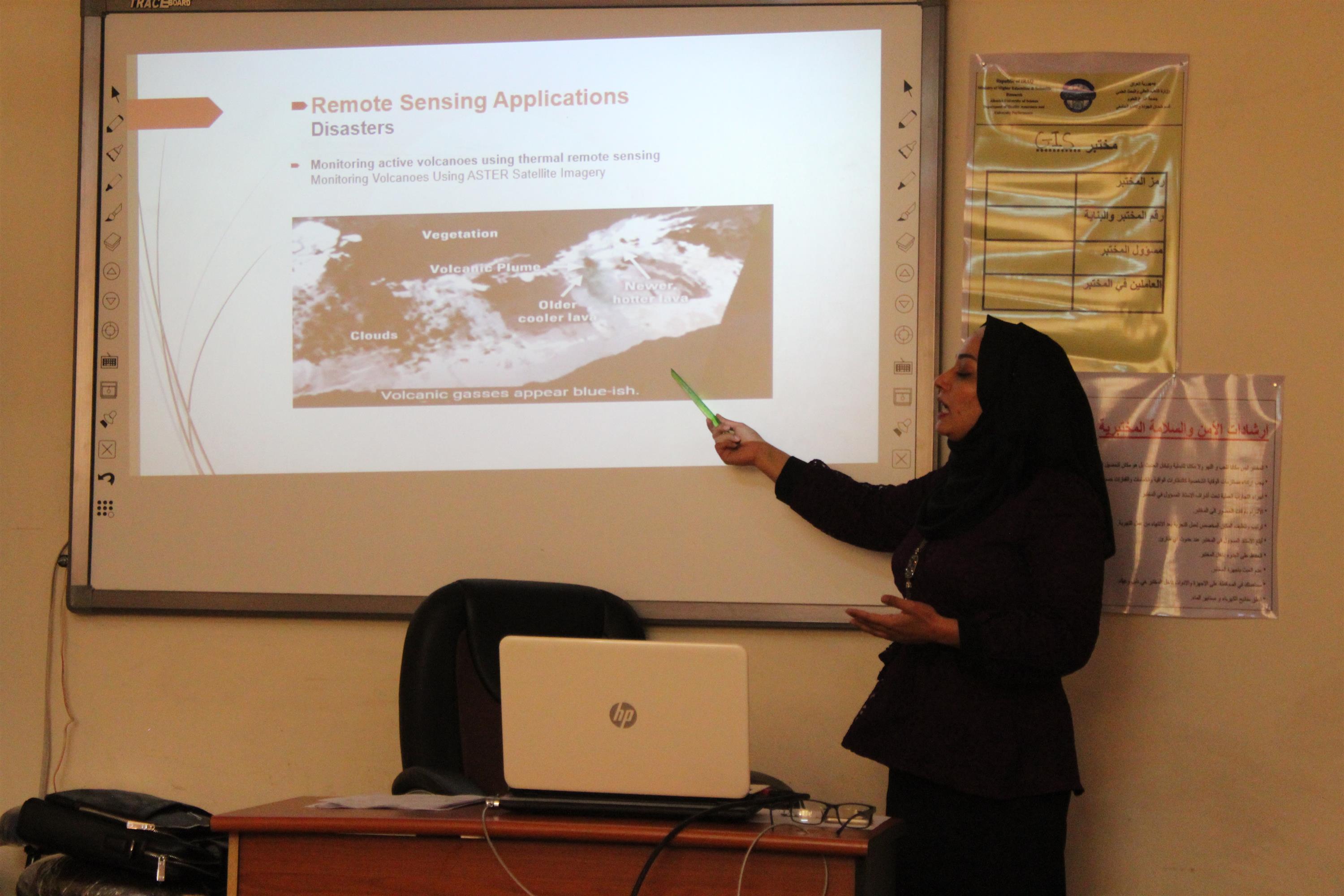 شارك في القائها م.م.هاله كاظم حسن التدريسيية في قسم التحسس النائي وبحضور عدد من التدريسيين