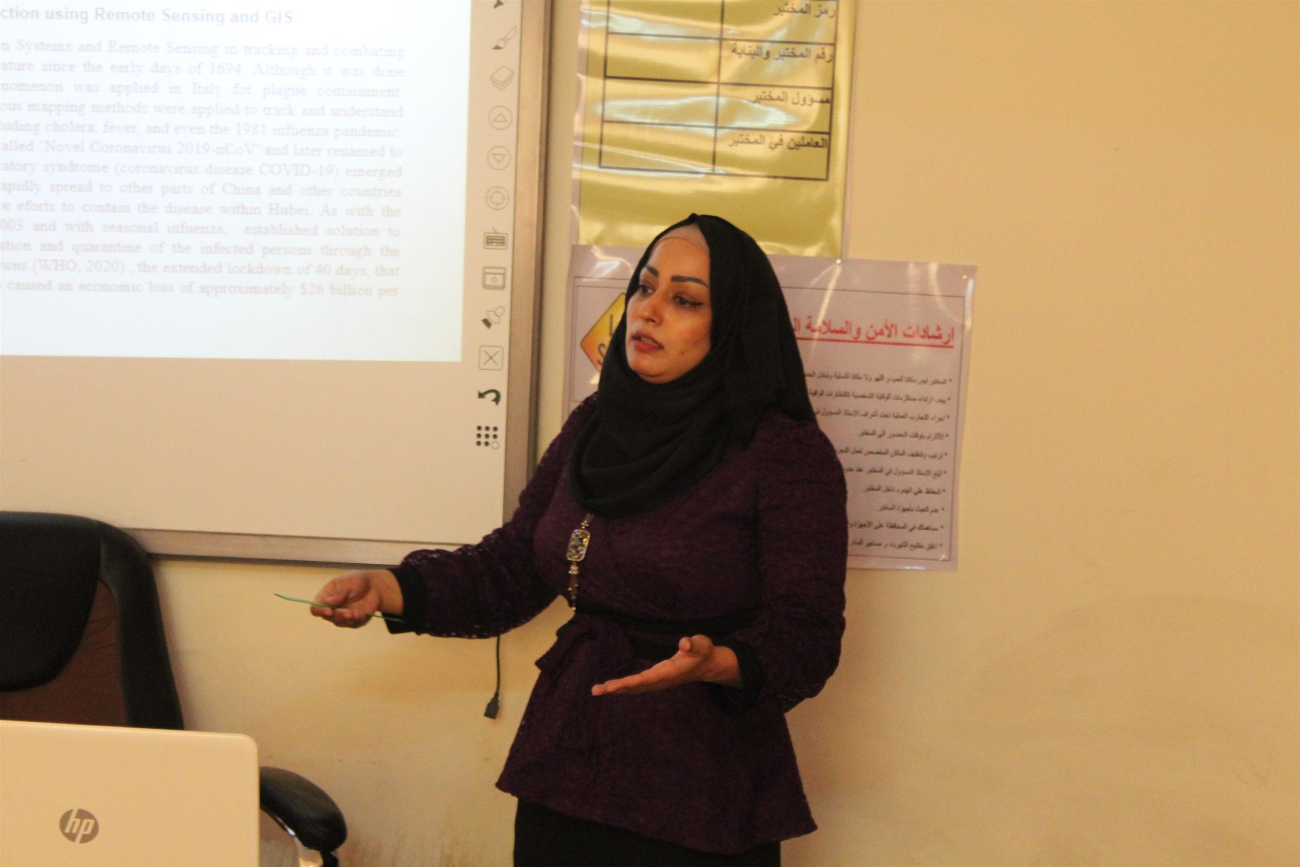 هدفت المحاضرة الى يان اهمية الاستشعار عن بعد متمثلة بتطبيقاته الواسعة في مجال التغيرات المناخية والزراعة والتطبيقات الحديثة مثل تحليل خطر فايروس كورونا covida-19