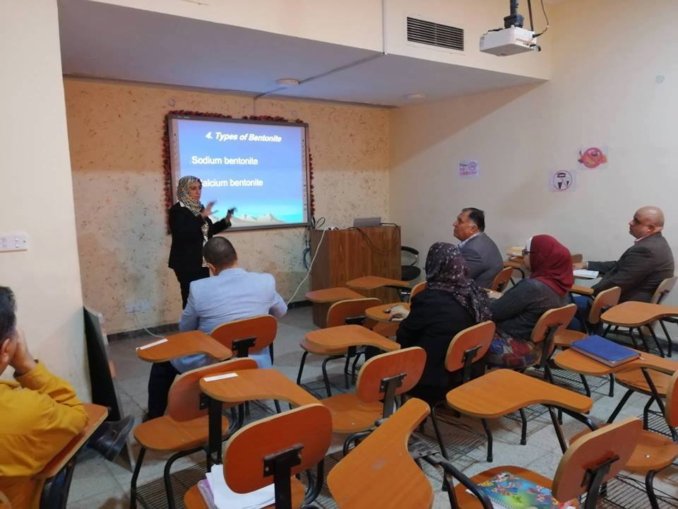 اقامت كلية التحسس النائي والجيوفيزياء محاضرة بعنوان المعادن الصناعية، معدن البنتونايت واستخدماته القتها الدكتورة اماني لؤي محمد صالح تدريسية في قسم الجيوفيزياء .