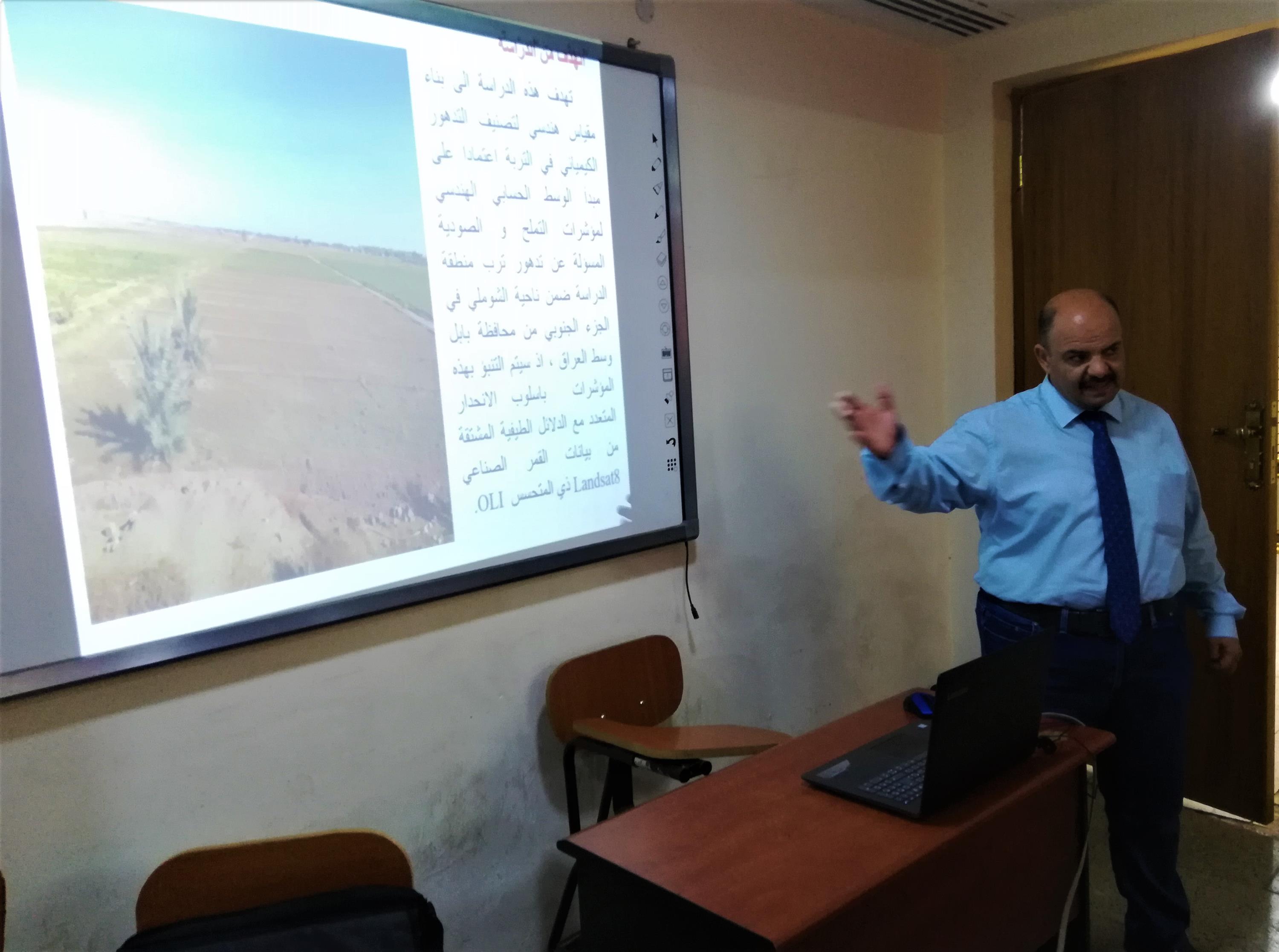 محاضرة في جامعة الكرخ للعلوم عن بناء مقياس التدهور الكيميائي في التربة ببيانات التحسس النائي