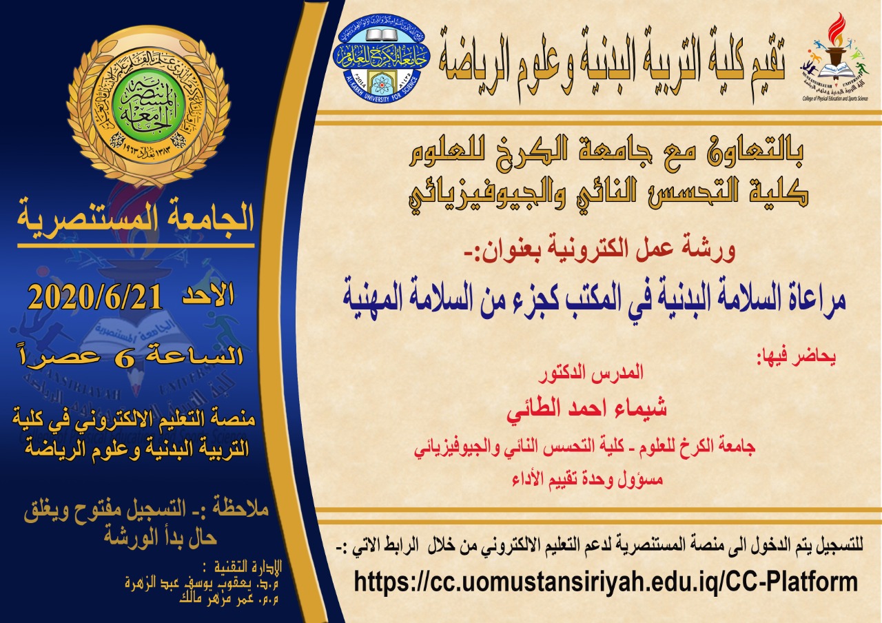 بالتعاون مع الجامعة المستنصرية كلية التربية البدنية وعلوم الرياضة عبر المنصة الالكترونية لجامعة المستنصرية