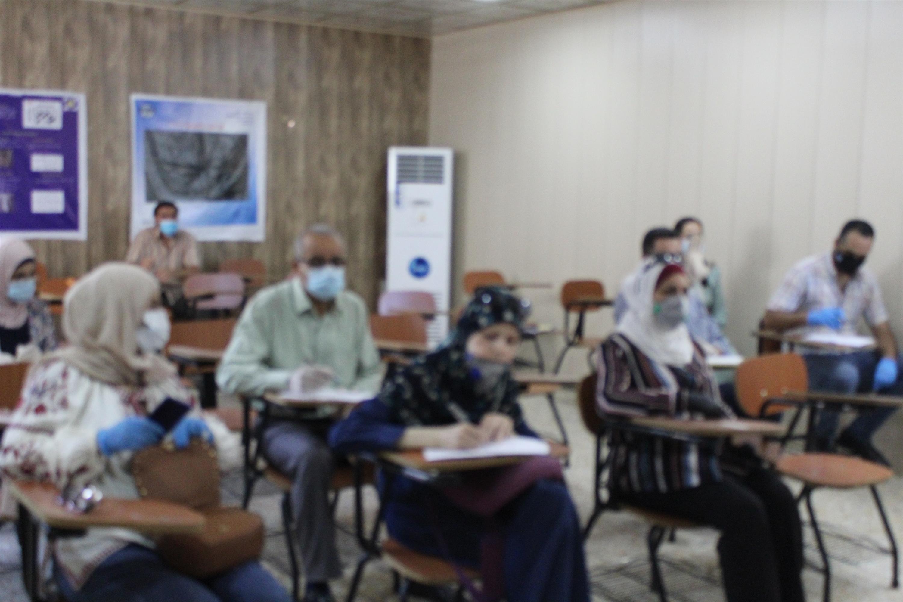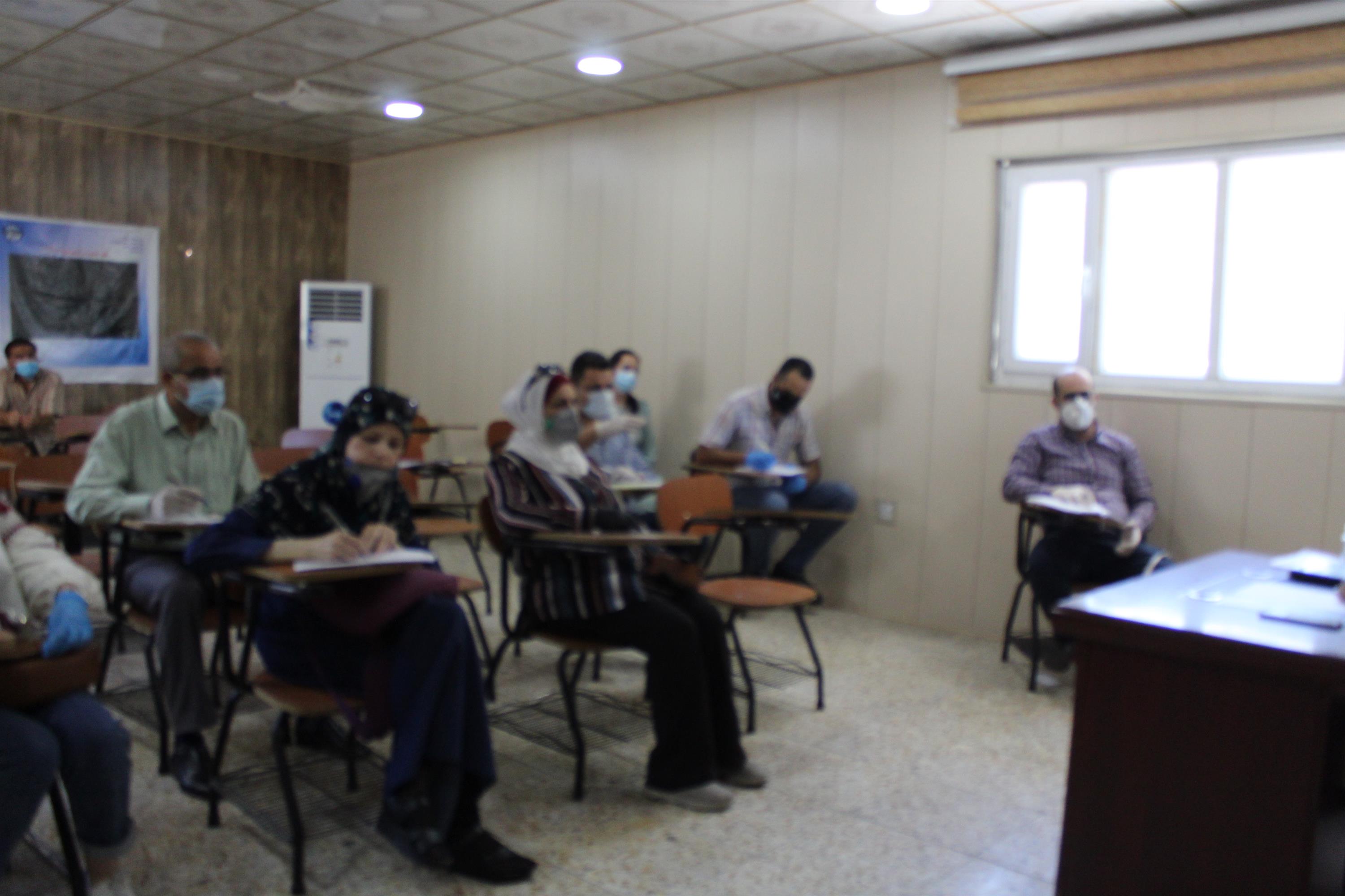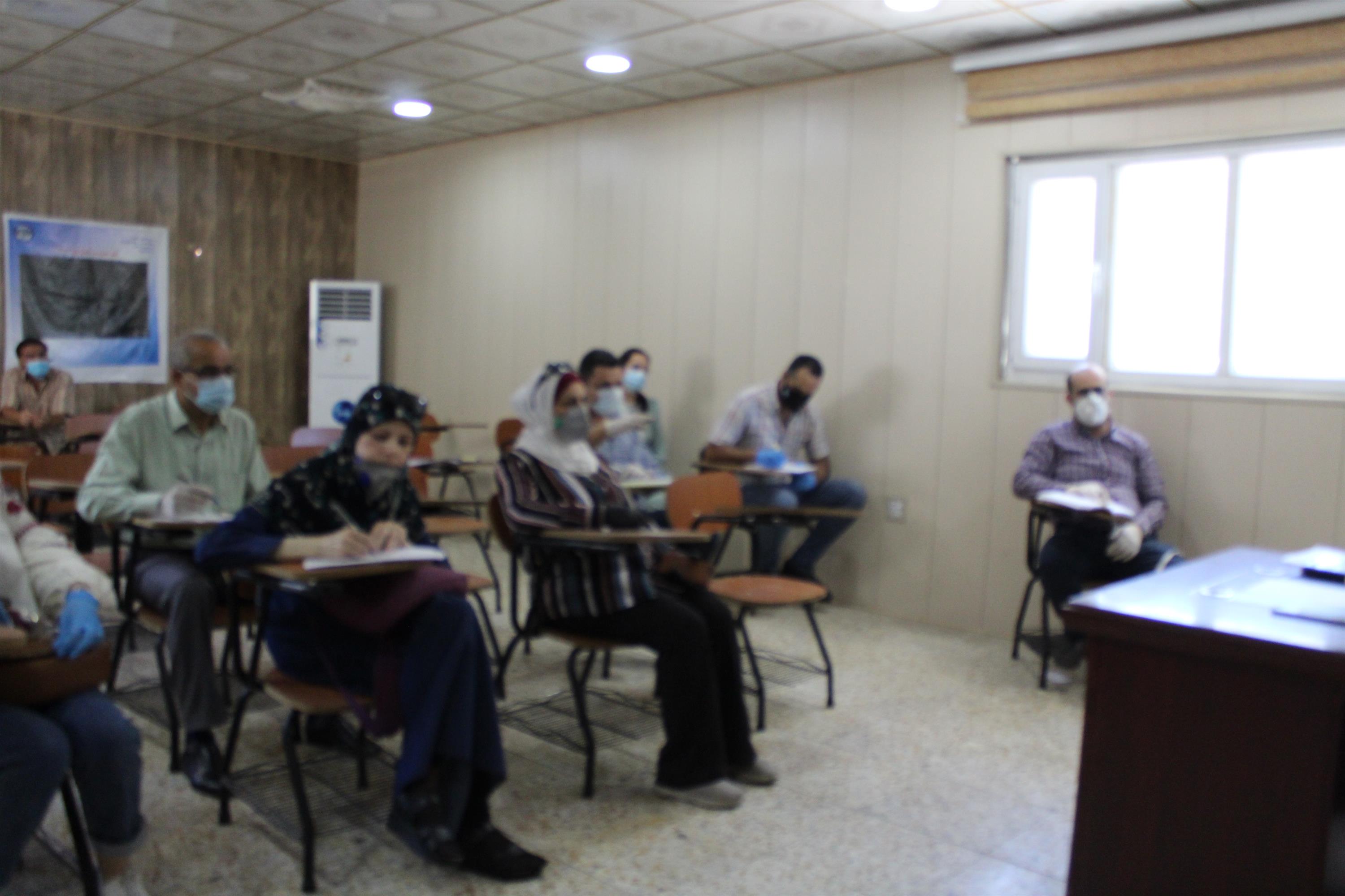 مساعد رىيس الجامعة للشؤون الادارية وعميد كلية التحسس النائي والجيوفيزياء يجتمعان باعضاء اللجان الامتحانية