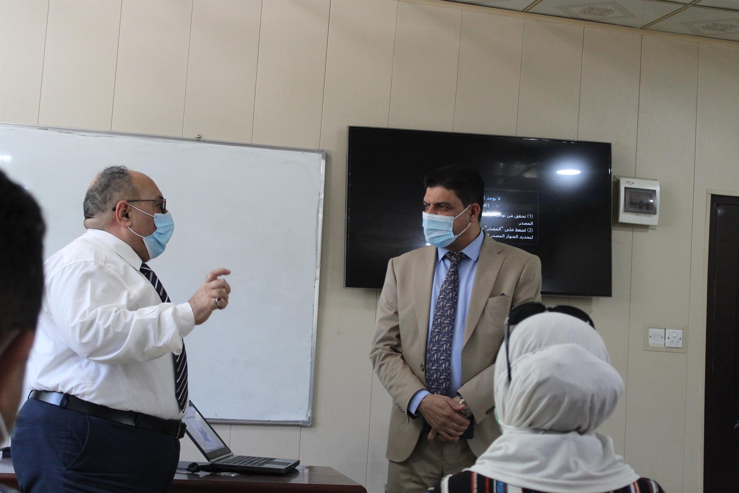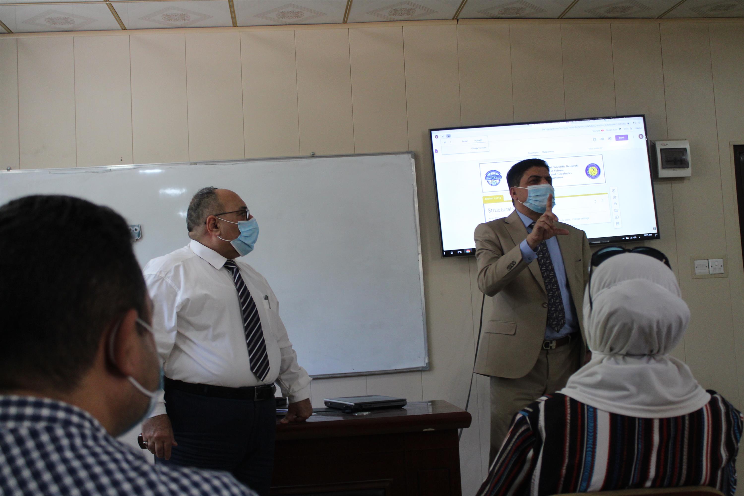 عقد السيد مساعد رئيس جامعة الكرخ للعلوم للشؤون الادارية الدكتور رائد نوفي حسان برفقة السيد عميد الكلية الاستاذ الدكتور كمال محمد عبود اجتماعاً مع رؤساء واعضاء اللجان الامتحانية لقسمي التحسس النائي والجيوفيزياء لبحث الاستعدادات لاجراء الامتحانات النهائية للعام الدراسي 2019-2020 في الكلية.