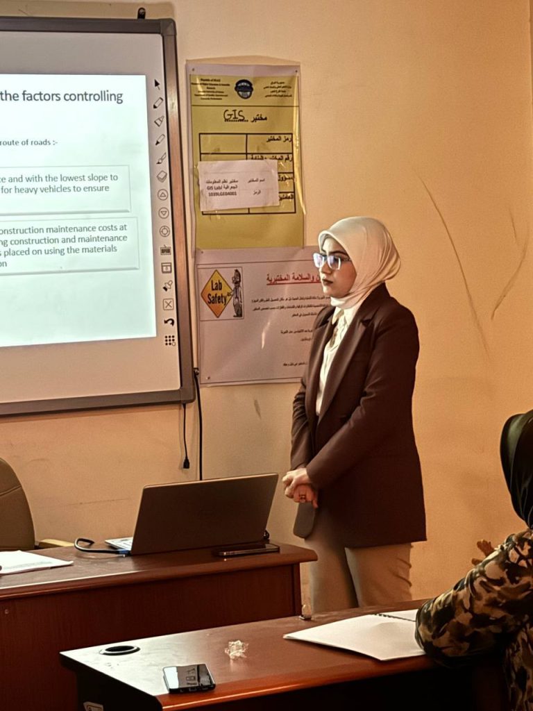 في يوم الأحد الموافق 19/5/2024، تم مناقشة مشروع تخرج الطلبة (هبة مثنى عبدالغالب، فاطمة نصر فاضل، فاطمة صادق حنون، نور علي رزاق، ومريم وسام يوسف) تحت عنوان “Geomorphology-engineering and its application in GIS Iraqi road: a case study” بإشراف أ.م.د. فاروق محمد علي. تناول المشروع أهمية إعداد تصميمات جيومورفولوجية هندسية للطرق تحتوي على دراسات شاملة لحركة المرور، تكوينها، خصائصها، وتصميم المركبات والسرعات التصميمية. كما تم عرض الجداول والأشكال التوضيحية المستخدمة في المواصفات الهندسية للطرق.