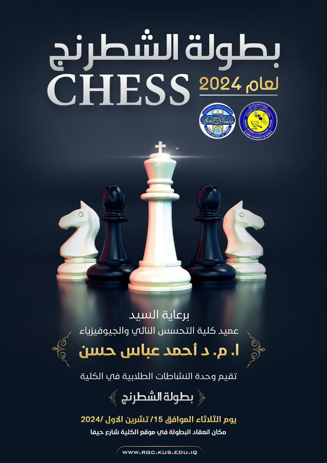 برعاية السيد عميد كلية التحسس النائي والجيوفيزياء، الأستاذ المساعد الدكتور أحمد عباس حسن المحترم، تنظم كلية التحسس النائي والجيوفيزياء بطولة الشطرنج التي ستشهد مشاركة واسعة من أساتذة وطلبة القسمين العلميين. ستقام البطولة يوم الثلاثاء، الموافق 15/10/2024، في مقر الكلية الواقع …