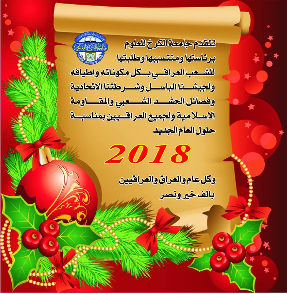 تتقدم جامعة الكرخ للعلوم برئاستها ومنتسبيها وطلبتها للشعب العراقي بكل مكوناته واطيافه ولجيشنا الباسل وشرطتنا الاتحادية وفصائل الحشد الشعبي والمقاومة الاسلامية ولجميع العراقيين بمناسبة حلول العام الجديد