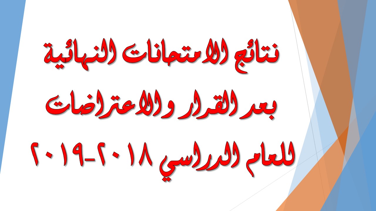 نتائج الامتحانات النهائية بعد القرار والاعتراضات للعام الدراسي 2018-2019
