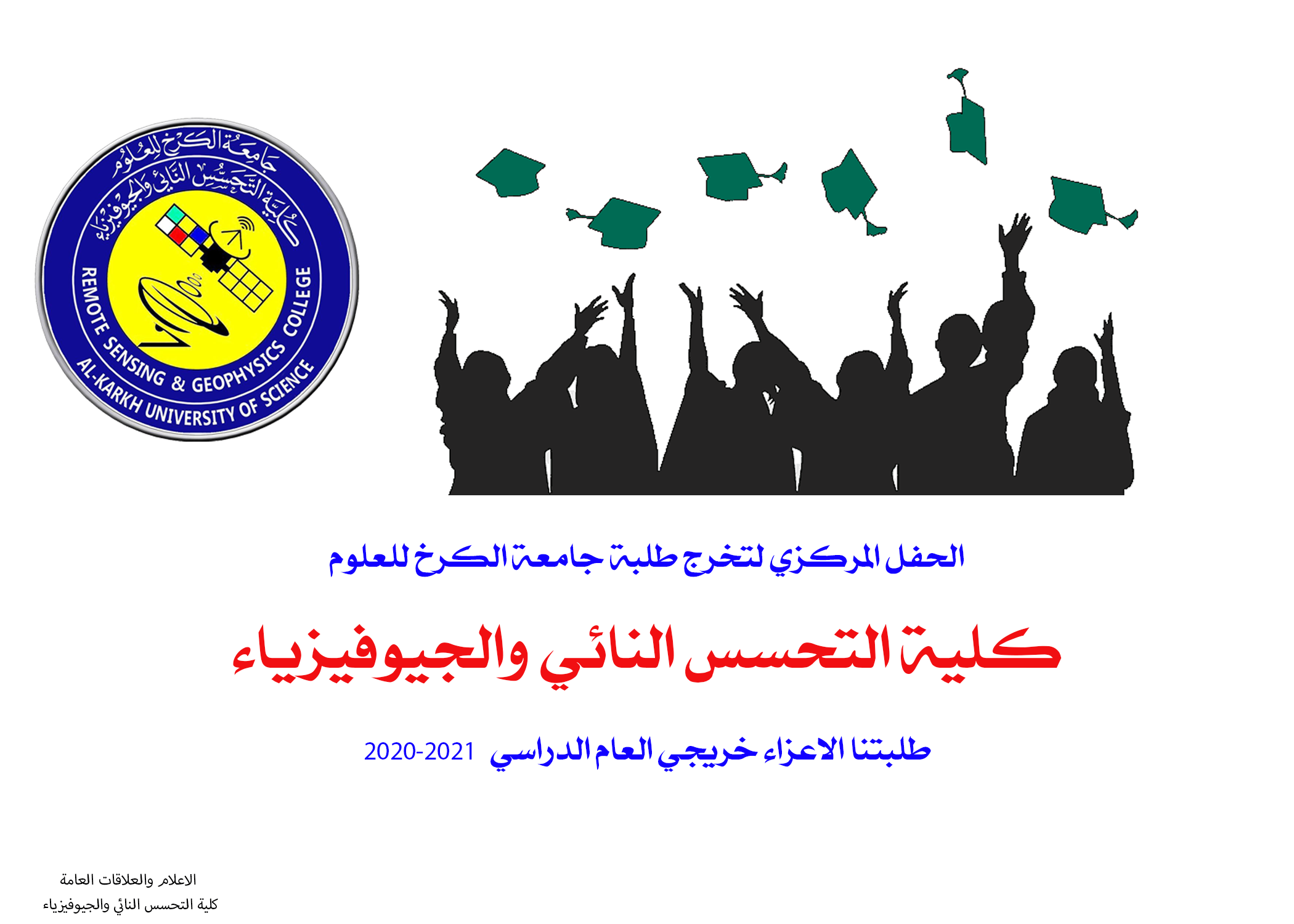 الى الطلبة خريجي كلية التحسس النائي والجيوفيزياء العام الدراسي 2020-2021 تنسب حضوركم لفعاليات حفل التخرج المركزي لجامعة الكرخ المقرر اقامتها يوم الخميس الموافق 3 اذار