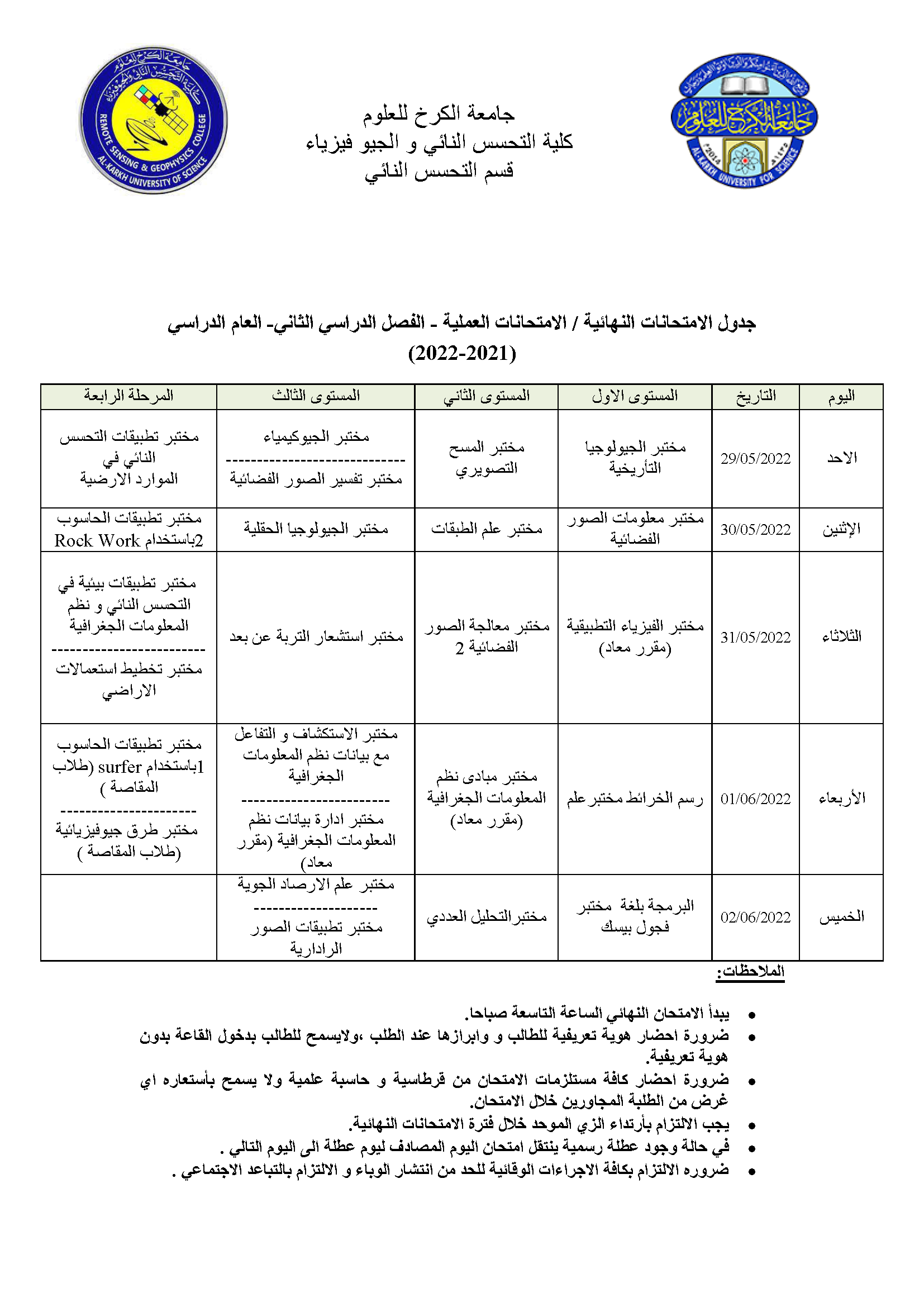 لطلبة قسم التحسس النائي في كليتنا للمستويات كافة – الاول – الثاني – الثالث – الرابع