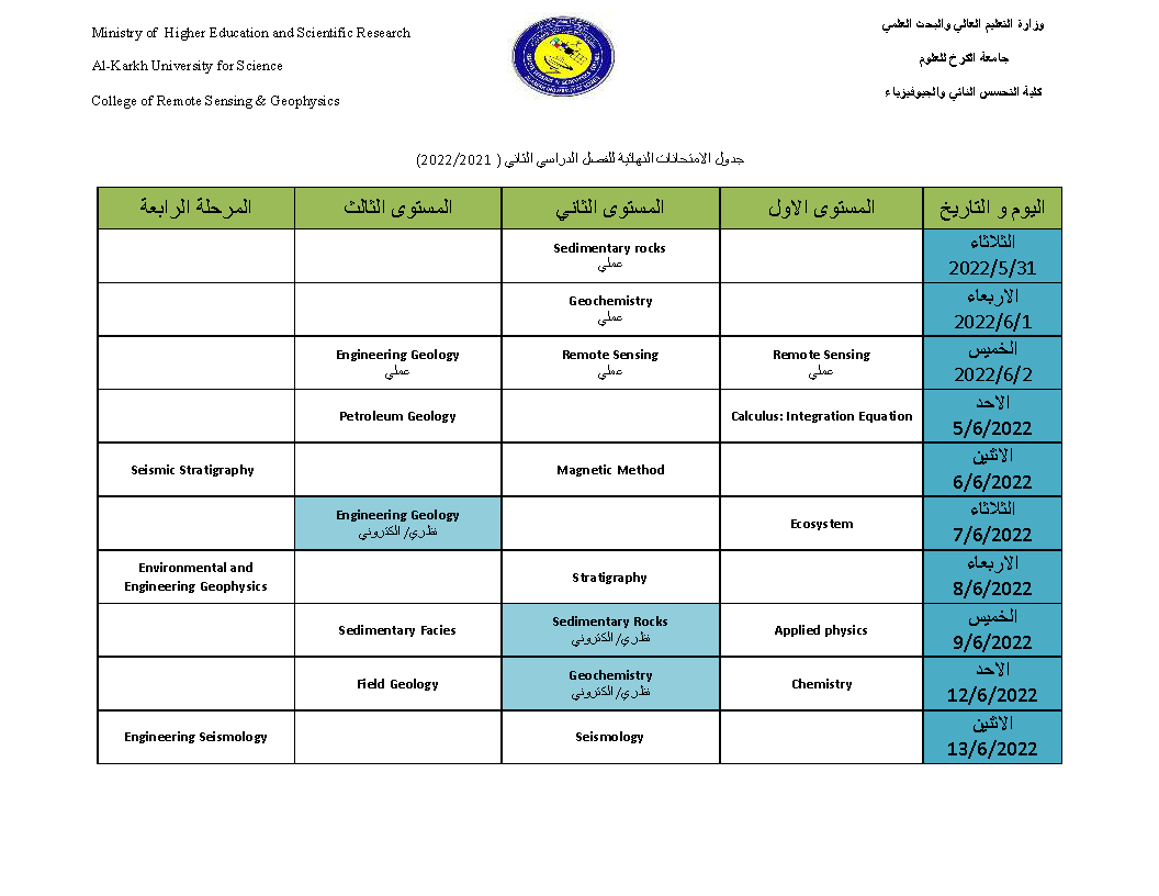 لطلبة قسم الجيوفيزيا في كليتنا للمستويات كافة – الاول – الثاني – الثالث – الرابع