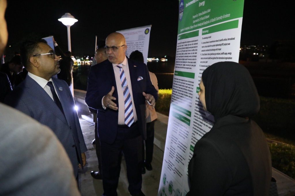 وجاء هذا الحضور دعما للجهود العلمية المتميزة التي يبذلها طلبة الكلية وأساتذتها في إعداد وتنفيذ مشاريع التخرج النوعية . حيث اطلع السيد رئيس الجامعة خلال جولته على نماذج من مشاريع التخرج التي أنجزها طلبة الكلية، والمعروضة بشكل علمي منظم عبر بوسترات وفلكسات، بحضور أساتذتهم المشرفين الذين كان لهم الدور الأساسي في الإشراف والدعم الأكاديمي.