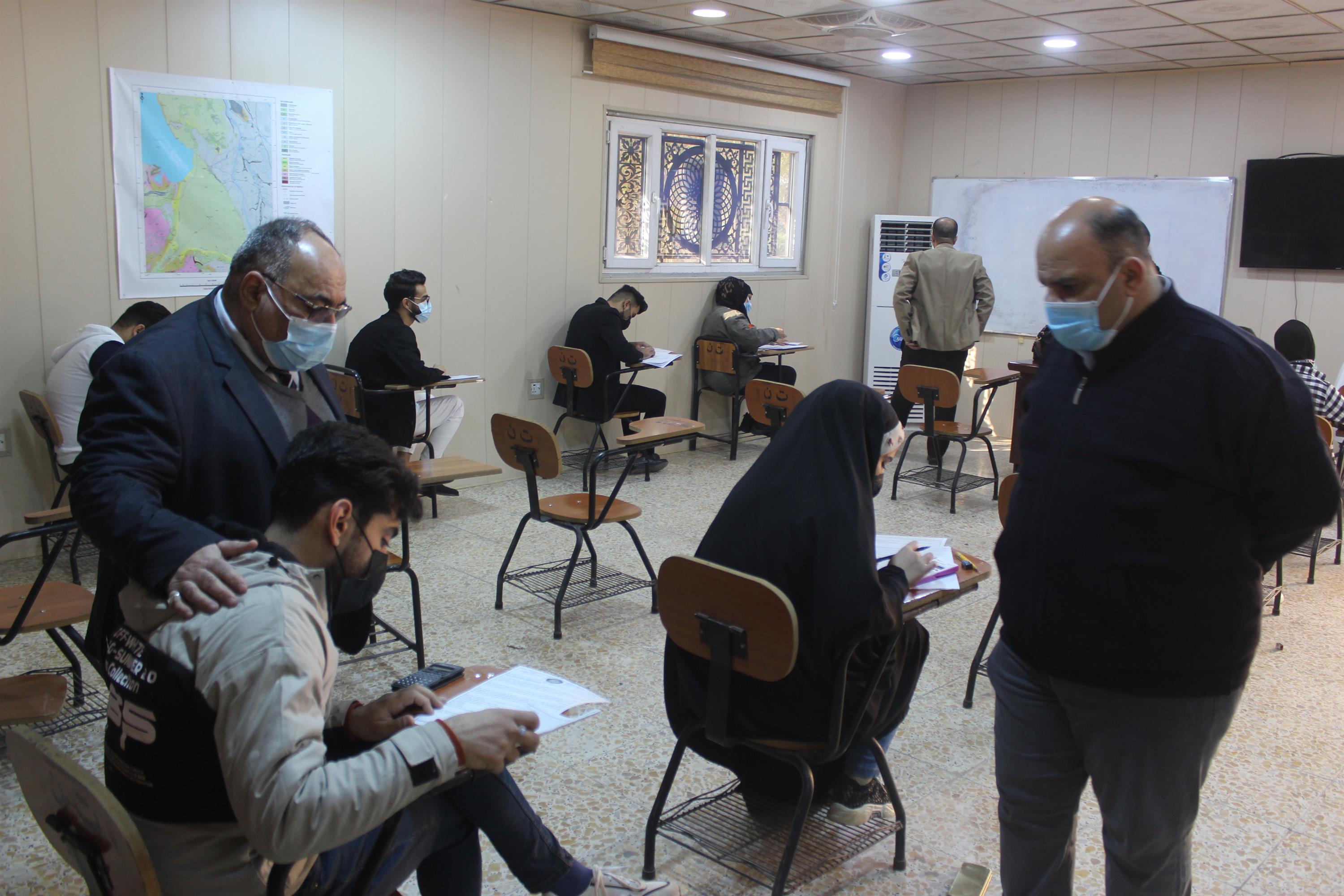 an inspection tour of the dean of the college of remote sensing and geophysics, al karkh university of science, professor dr. kamal mohammed abboud, accompanied by mr. assistant dean for administrative affairs dr. ahmed abbas hassan for the exam halls for the final exams the first semester of the academic year 2021-2022 to see the progress of the examinations and to see the needs needed to make the exam process a success, wishing everyone success in their scientific career.
