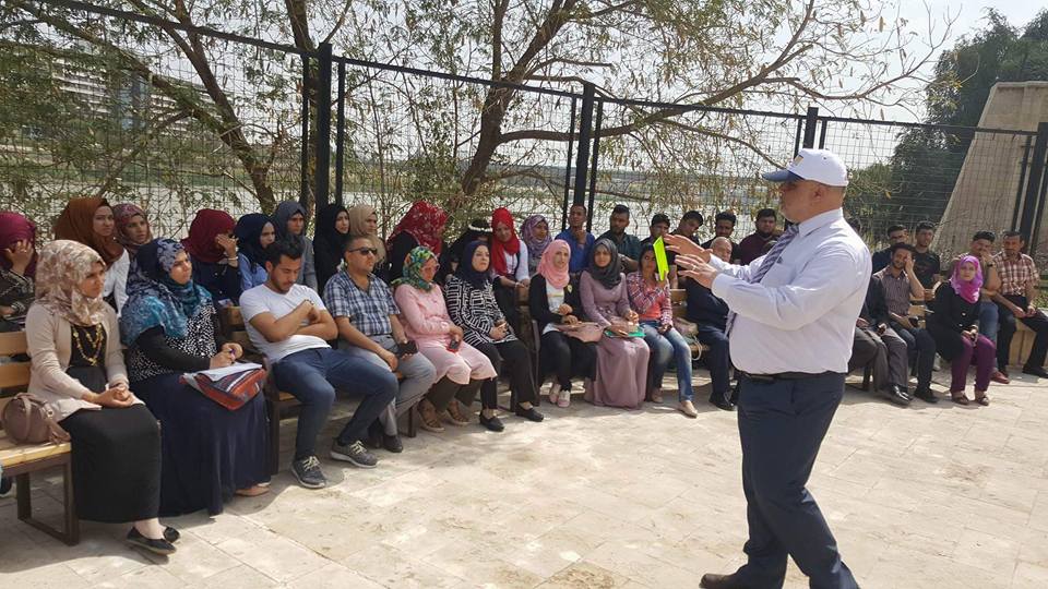 The college of remote sensing and geophysics arranged a lecture in the outdoor at the university. It was held on the banks of Tigris river. The top of the lecture about the economic resources and energy resources in Iraq